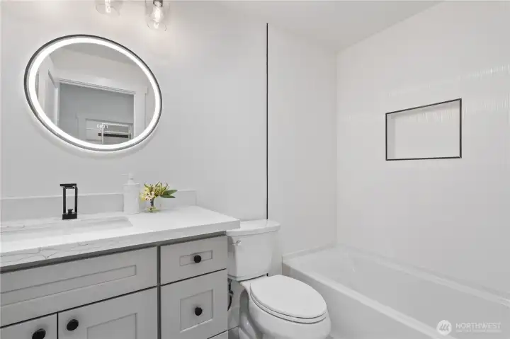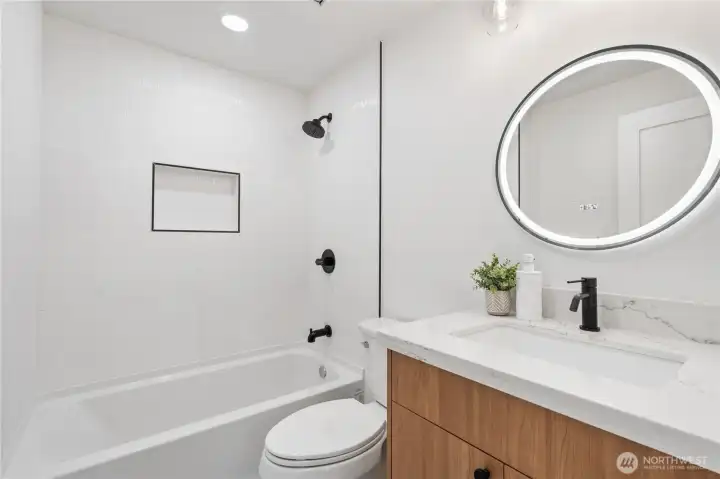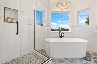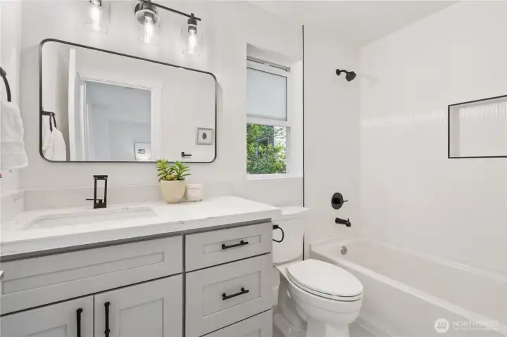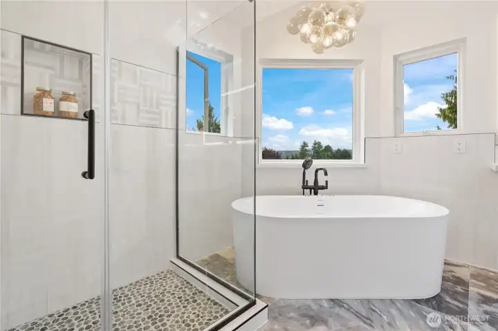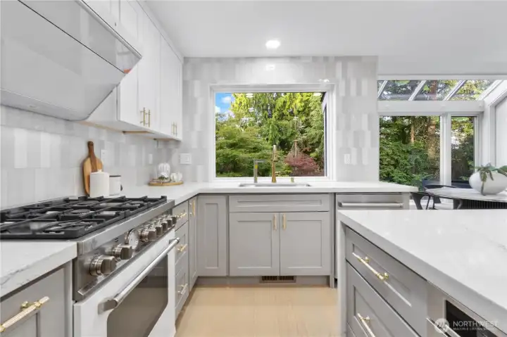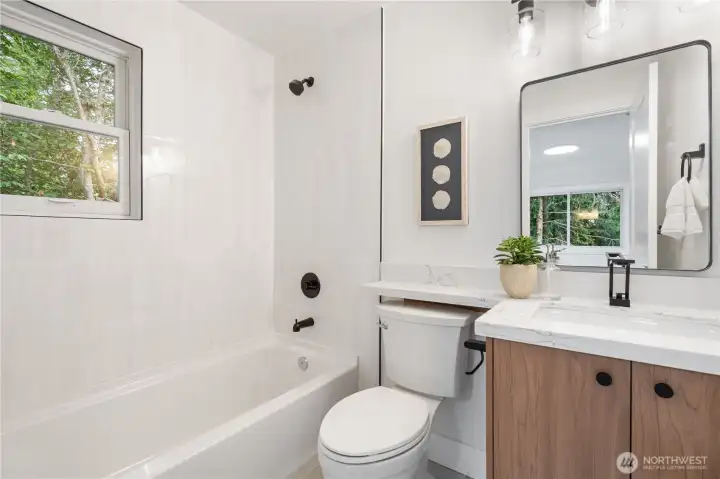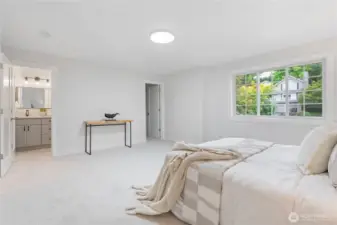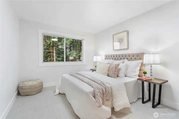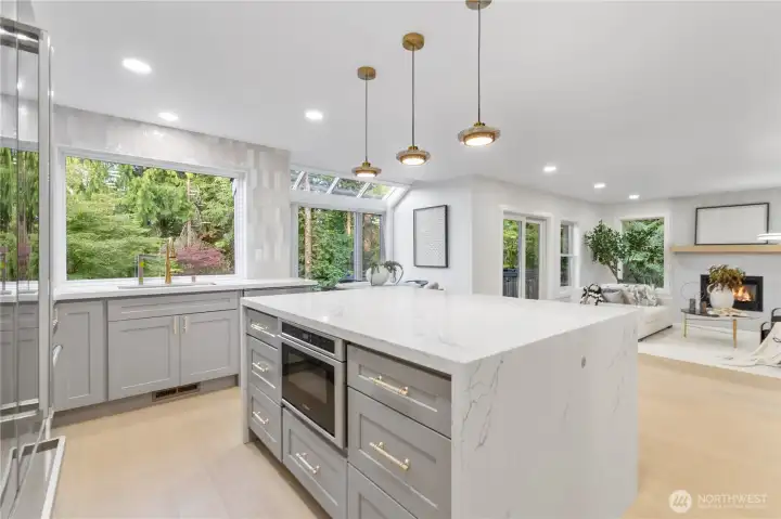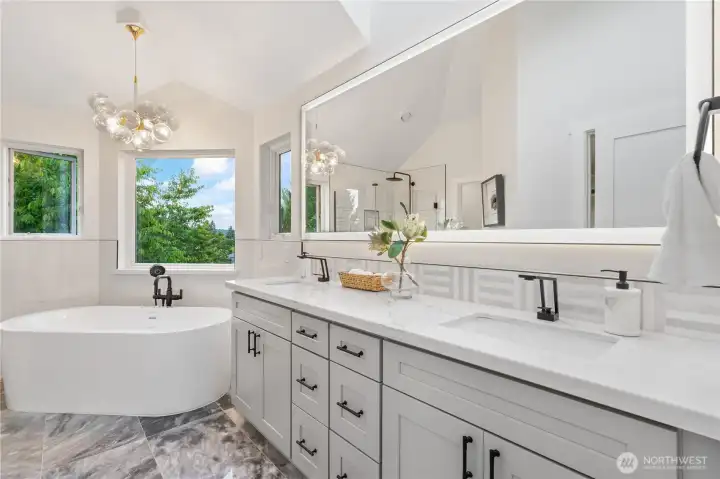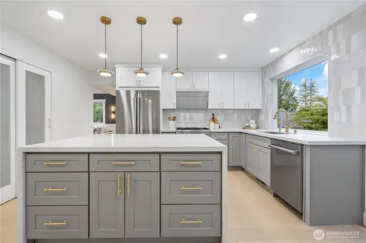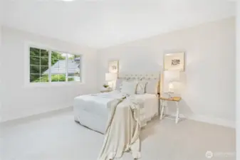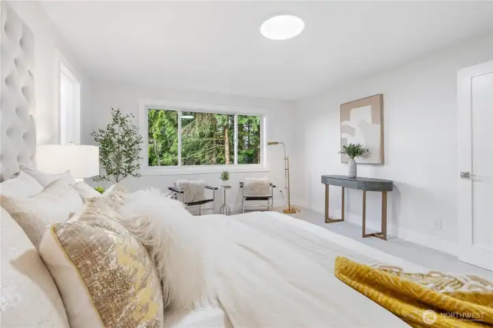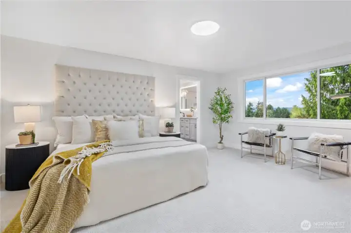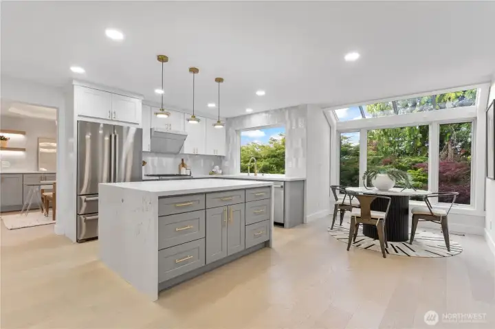 Don’t miss this exceptional opportunity near Microsoft in Bellevue’s top-rated school district! This fully permitted, down-to-the-studs remodeled 5BD/7BA home features all ensuite bedrooms and luxury finishes throughout. Updates include all new interior finishes, insulation, plumbing, electrical, siding, and garage door. The open floor plan showcases a chef’s kitchen with quartz waterfall island and abundant natural light. Upstairs features 3 ensuite bedrooms, including a stunning primary suite with mountain views. Lower level includes private entrance, second kitchen, 2 en-suites, and second laundry—ideal for guests or rental income. The landscaped garden offers mature maple trees and backs to a lush greenbelt for privacy. Interlake High.