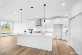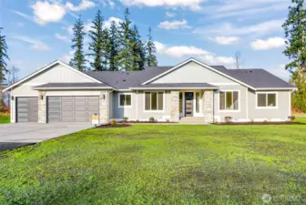 50k Rate Buy Down Bonus, Exceptional New Construction on Quiet Large & Level Lot. 2578 asf Rambler. Bright and Open Concept Design with detailed upgrades. Gourmet Kitchen, quartz counters, ample cabinets, stainless appliances. Dining nook with enormous bright windows to indulge in the tranquil view, Covered outdoor deck for year around use. The Fireplace is the focus in the Living Room. Large Formal Dining off entry, Den with French doors could be 4th bedroom. Utility Rm off garage. Primary Suite w/5-piece Bath Beautifully Tiled & Extra Big Walk-in-Closet. 3 car garage. Finishes vary from Photos. 5 min to I-5 and shopping.
