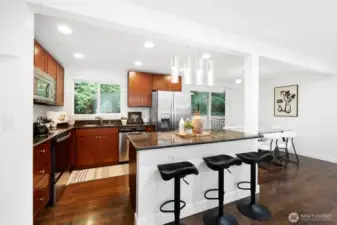 Remodeled 4-bedroom, 2.5-bath home located at the end of a peaceful cul-de-sac in the highly sought-after Finn Hill neighborhood and Lake Washington School District. The gorgeous kitchen features stainless steel appliances, granite countertops, and an island with breakfast bar, opening to a bright dining room and spacious living room with a cozy wood-burning fireplace. The primary suite offers a private bath, while the lower level features a large rec room with wet bar and second fireplace. Expansive backyard with deck and patio—perfect for entertaining. Conveniently located near schools, parks, and trails.