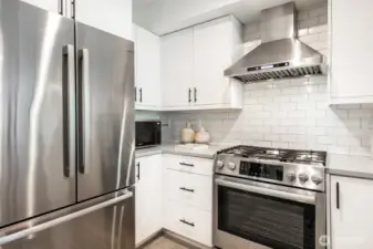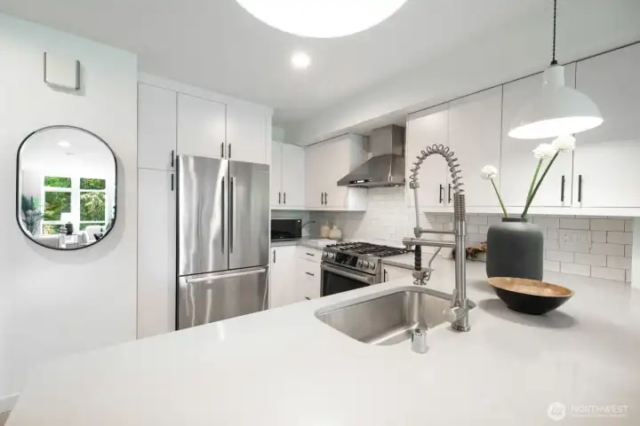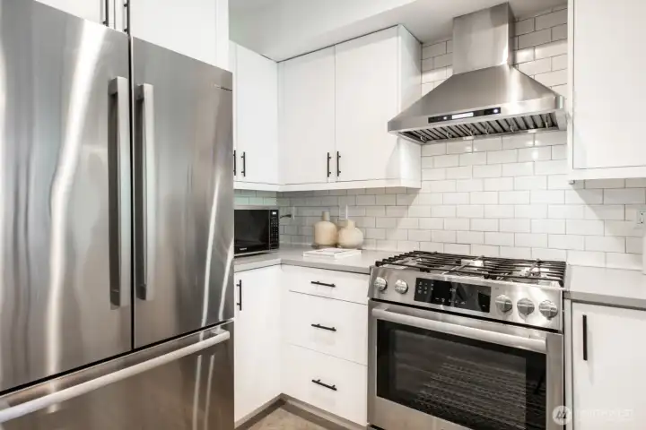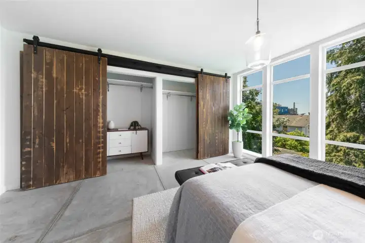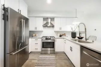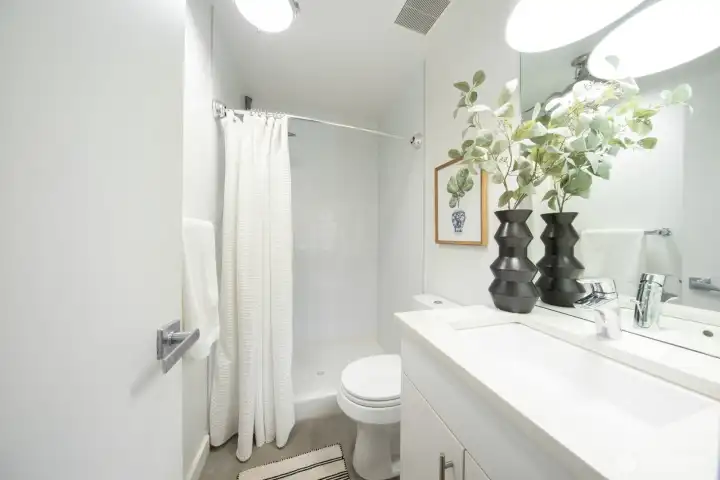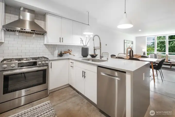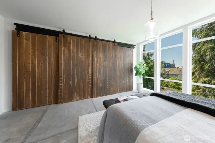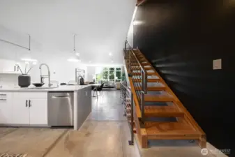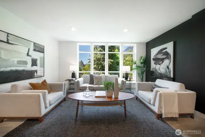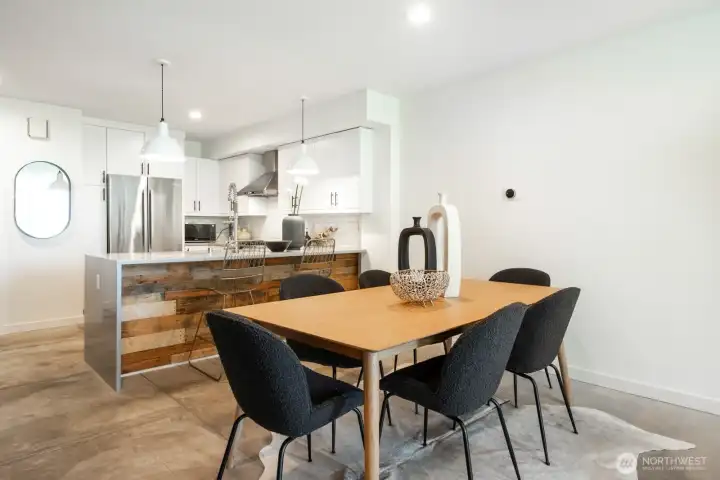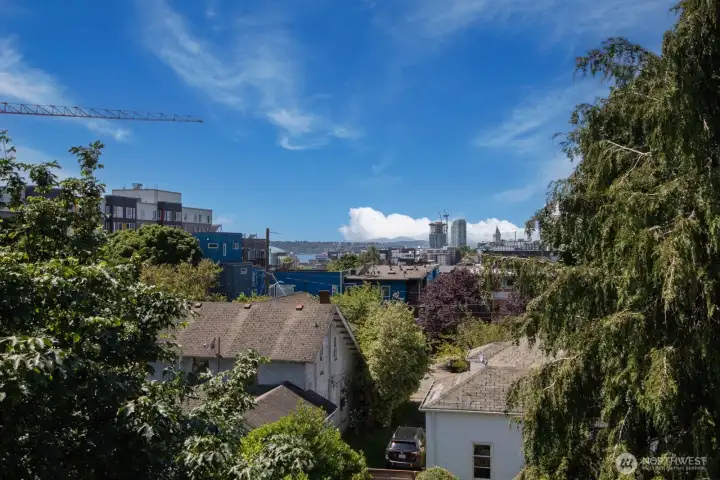 Stylish, spacious, and perfectly located—this light-filled townhouse has it all! The huge-wide open main floor features a sleek kitchen that flows seamlessly into a generous sized dining and living area, framed by floor-to-ceiling windows overlooking your private patio & offering tons of natural light. Upstairs, the west-facing primary suite offers double closets and a full bath, plus an additional bedroom. A lower-level bedroom with adjacent bath is perfect for guests or a home office. Polished concrete floors, floating staircases, and timeless finishes throughout. Enjoy sweeping city, Sound, and mountain views from the rooftop deck. Tucked away in a quiet spot with easy access to downtown, freeways, dining, and more! Don't miss this one!