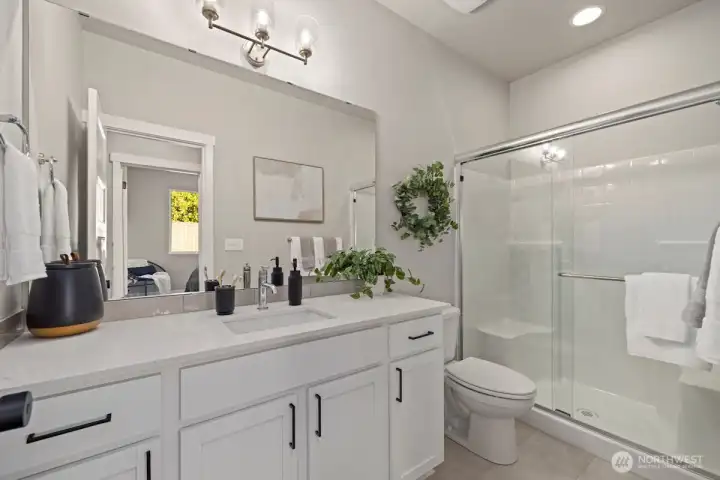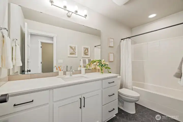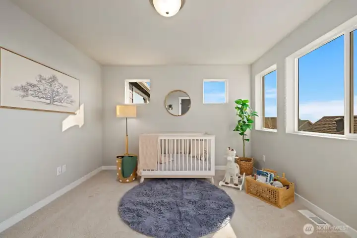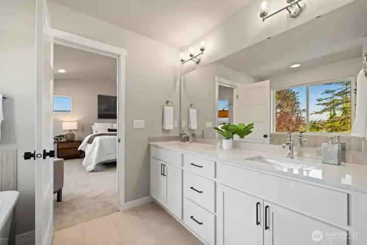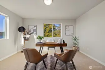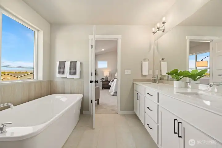 Noble Ridge is an exquisite small view community of just 14 homes that sits high above the bluff offering spectacular views of the Olympic Mountains and the Puget sound with trail access on a dead end cul-de-sac. The RAINIER on lot 1 is a thoughtfully designed 2779 sqft home, with a chef's dream kitchen offering an 8' Island with white soft closing cabinets and 3cm gorgeous quartz countertops. The main level offers an inviting great room, office/guest bedroom, and walk-in pantry. Upstairs you’ll find the relaxing owner’s suite complete with a luxurious 5-piece bath, an additional 3 bedrooms, and a versatile loft. This corner lot home have added picture windows to take in the views from every room. It is absolutely Gorgeous and move in ready