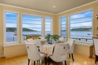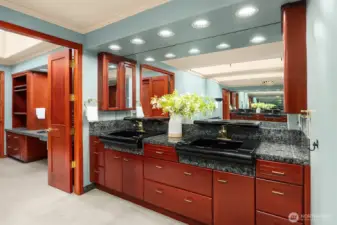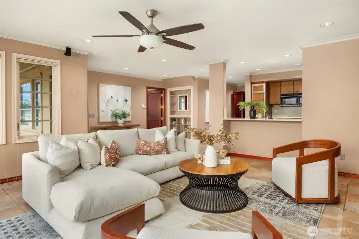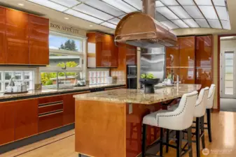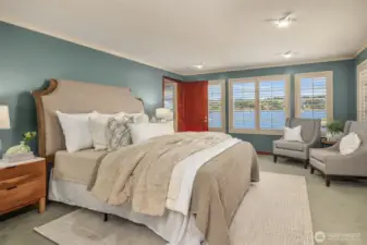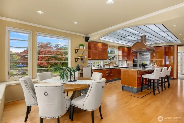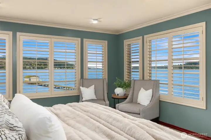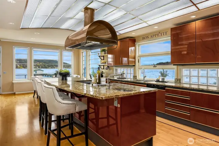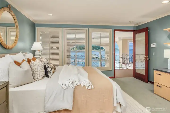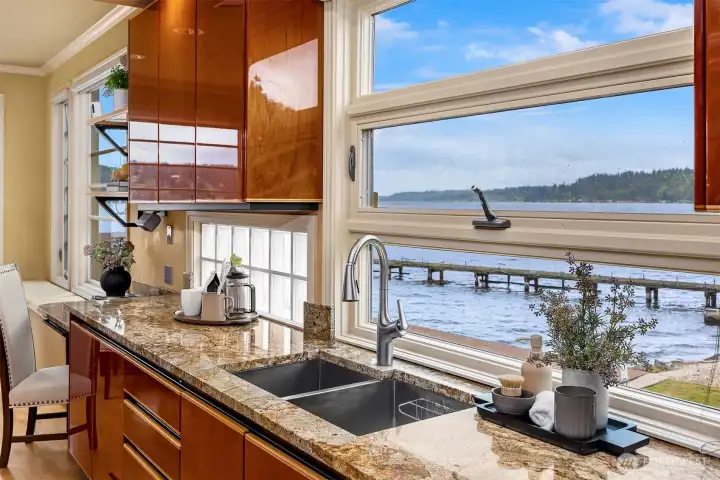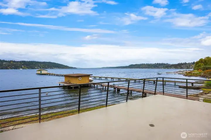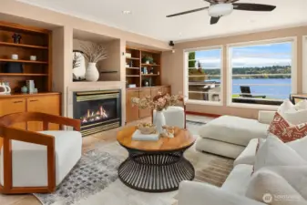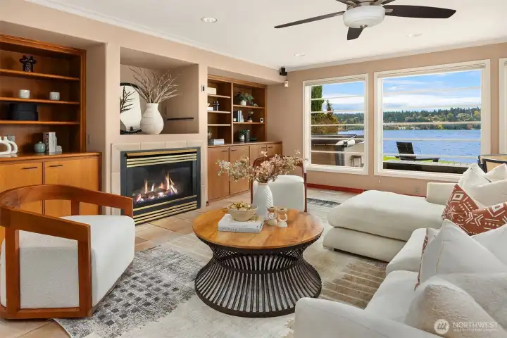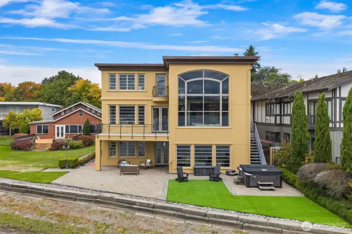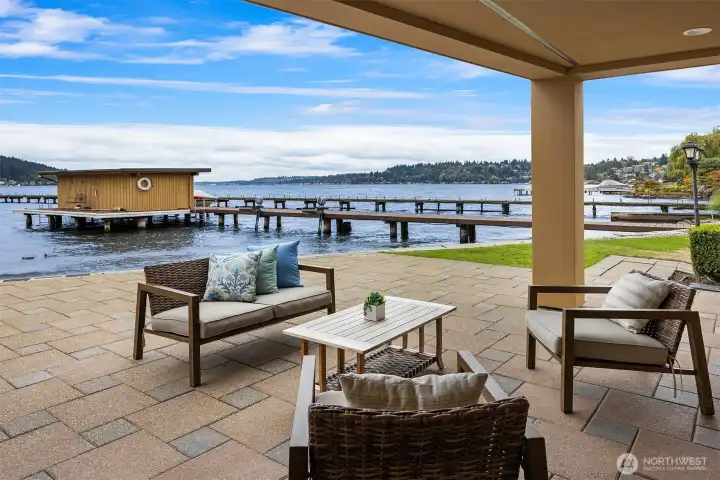 Exquisitely crafted w/modern European elegance, this multi-generational estate radiates golden warmth. A gated car pavilion for sophisticated living, anchored by Italian high-gloss cooking arena w/burnished copper hood beneath a reflective barreled ceiling. High-gloss + tumbled marbles, granite, terra cotta create luxurious interiors. Lower level features bedrooms w/Jack-and-Jill bath, functional kitchen, living space; main level offers soaring windows, gourmet kitchen, living area; upper level includes two primary suites w/spa baths and serene water views. Fully gated waterfront w/extraordinary frames of Lake Washington + Mt. Rainier. Deeded to LF Park Civic Club. Possible Sheridan Beach Club membership. Neighboring MLS# 2440346 for sale.