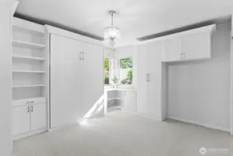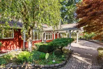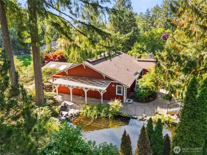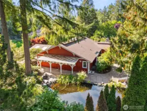 Tucked away on a serene 1.35± acre lot, this inviting rambler offers an easy, flowing floor plan perfect for everyday living. The LR off the entry features a cozy gas fireplace & surround sound, while the kitchen boasts granite countertops, ample cabinetry, & an eating nook opens to the FR w/access to a covered patio. The spacious primary BR includes surround sound, private deck access, a 5-piece bath, & a walk-in closet w/built-ins. 2 more bedrooms, including one with custom designer cabinetry and a Murphy bed, provide flexibility for guests or a home office. Enjoy the lush landscaping & tranquil koi pond in the backyard. A remarkable 2,592 SF shop w/3 RV doors, 2 reg overhead doors. Conveniently located near shopping & I-5. New roof 2025.