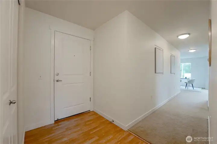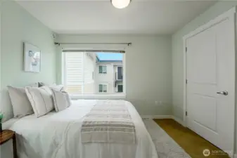 Top-floor, end-unit condo lives large with abundant natural light and west-facing windows that fill the space with warmth. The open kitchen with extensive cabinetry flows into a spacious living and dining area and a private deck for fresh air and relaxation. Featuring 2 bedrooms and 1.75 baths, the primary suite offers three closets and an en-suite; the second bedroom includes a walk-in closet. In-unit washer/dryer, elevator access with no stairs, and two secure parking spaces add everyday ease. Pet-friendly, well-managed building with strong reserves and no rental cap. Near groceries, parks, dining, I-5, and the future Pinehurst Light Rail Station (2026).