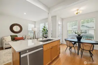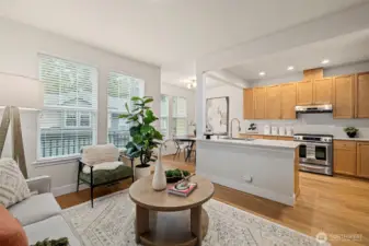 A rare opportunity to own a corner unit townhome in Snoqualmie Ridge! This spacious 3BR/2.5BA home offers a living room, family room, bonus area & 2 dining spaces - perfect for entertaining or working from home. Enjoy an updated kitchen, stainless-steel appliances, & abundant cabinetry. Enjoy hardwood floors throughout the main level, a cozy gas fireplace & a large balcony for relaxing outdoors. Features include a 2- car garage w/ EV charger, new lighting, AC & furnace (3yrs old), california closets & granite countertops throughout. The primary suite boasts a 5-piece bath and walk in closet. Home overlooking a serene courtyard with nearby trails & plenty of guest parking nearby. Close to restaurants, shops and Cascade View elementary.