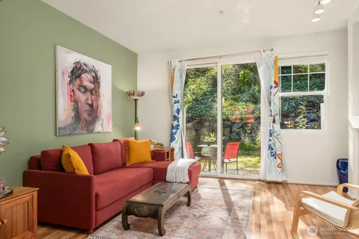 Just blocks from the light rail is this stunning town home that is move-in-ready. Offering high ceilings, designer paint, gorgeous flooring & a wide-open floorplan. Privacy all around with colorful views out every window + a secluded backyard. Charming Kitchen with center island, stainless appliances—open to dining & living room with fireplace & sliders to patio. Oversized garage. Welcoming community with sidewalks & tree-lined streets. Enjoy easy access to Chief Sealth Trail for weekend bike rides or morning jogs, and take advantage of the nearby community center's events & classes for all ages. Walkable! Nearby you’ll find fantastic multiple parks, schools, library, shopping, restaurants, and of course the light rail—it’s all here!