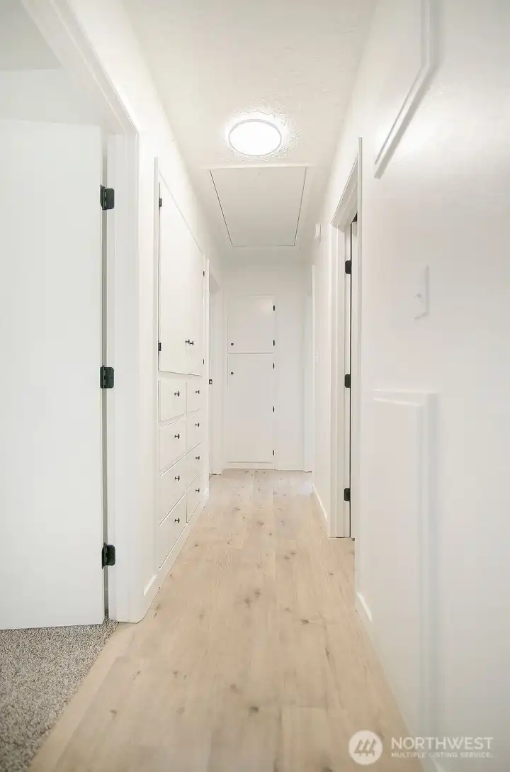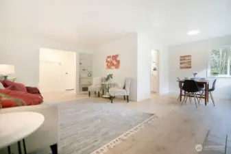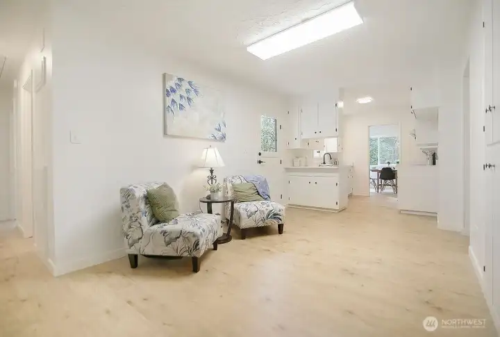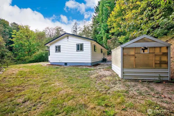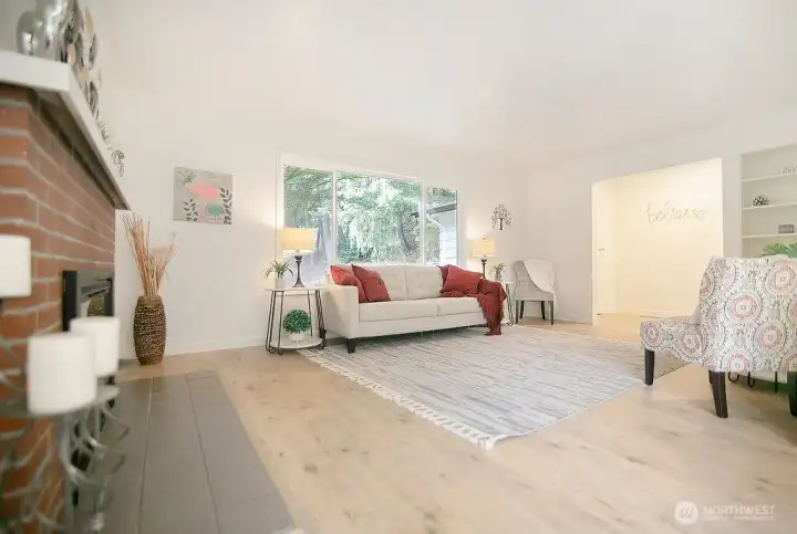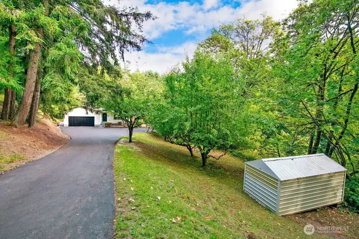 COLUMBIA HEIGHTS AREA -- 3 bedroom / 1.5 Bathroom -- 1 Level -- Living Room w/ Fireplace -- Kitchen w / Stainless Appliances -- Dining Room / Area -- Family Room Area -- Primary Bedroom w/ Bathroom -- Forced Air HP w/ AC -- Built-ins -- NEW Laminate & Carpet Flooring -- NEW Interior & Exterior Paint -- Vinyl Windows -- Attached Double Garage -- 2 Sheds / Outbuildings -- LARGE Lot Over 1/2 Acre -- Garden Space -- Trees -- Plenty of Parking -- Minutes to Longview / Kelso -- Approximately 45 Minutes to Vancouver / PDX Area