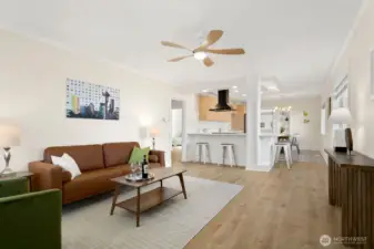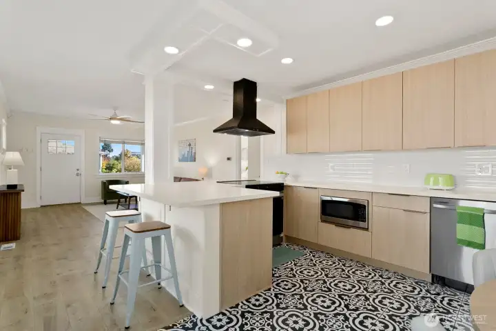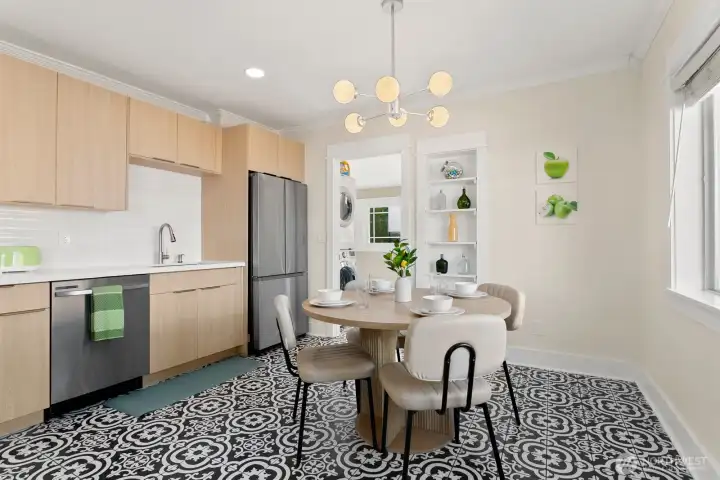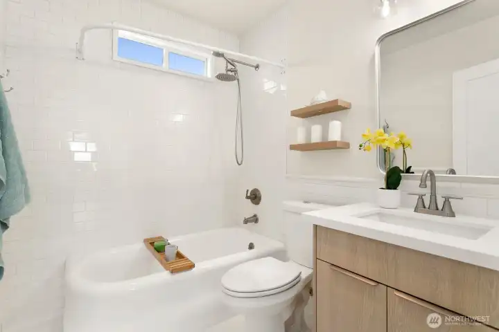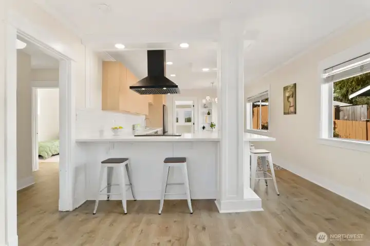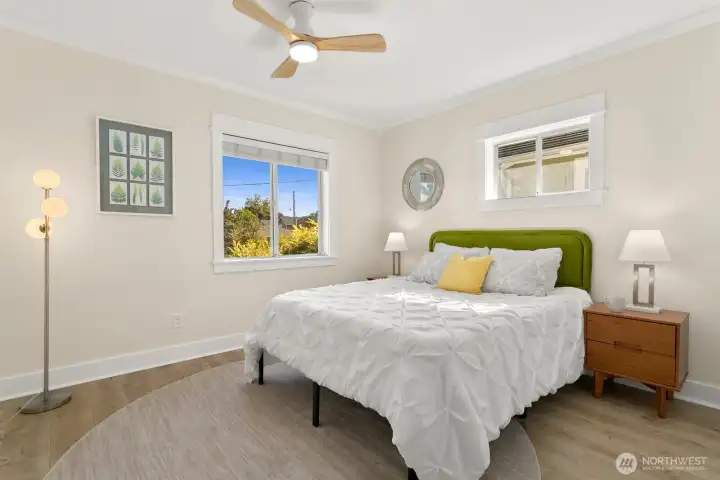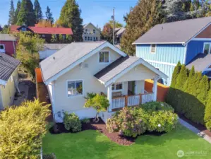 North Ruston charmer oozes curb appeal with yellow & white accents & spacious front yard bounded by white picket fence. Sound views from the living room & two bedrooms. Thoughtfully refreshed featuring an open floorplan living room & kitchen with new flooring, cabinets, counters, & appliances. Two generous size main floor bedrooms & updated bathroom, along with a laundry/utility space round out the main floor. Upstairs is a large bedroom & a bonus space that would serve well as an office or nursery. Large, terraced backyard with deck & pergola for fun outdoor entertainment. One car garage off the alley needs some TLC, but is perfect for an ADU conversion. Walk to the shops, restaurants, & vibrant Point Ruston waterfront! Welcome home!