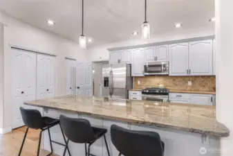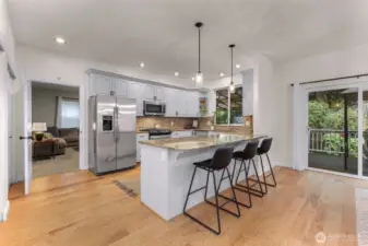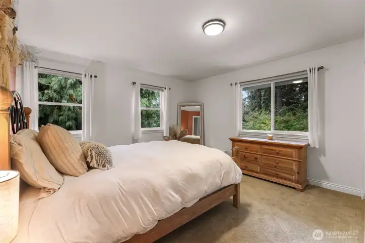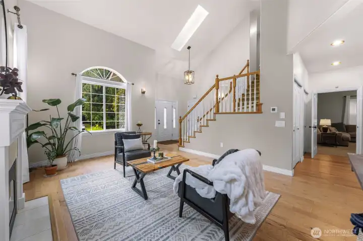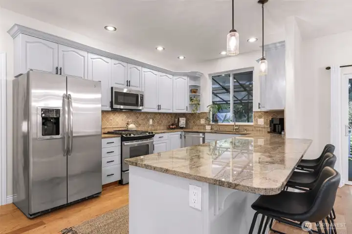 Sunny Gate 1 gem in Sudden Valley! Step into this light-filled fresh home with soaring ceilings, skylights & PNW views. The spacious layout features large bedrooms, a loft, and both family and living rooms for comfortable, flexible living. Gorgeous hardwood floors, granite counters & stainless appliances surround the open kitchen with eating bar. Upstairs find bedrooms, and flex space perfect as a home office, yoga studio or playroom. Two walk-in closets in grand primary suite. The covered composite deck and stone patio are perfect for bbq’ing & Adirondack chair relaxing. Flat driveway with parking for 4 cars. Explore nearby trails, private beaches, golf course, and marina access with boat launch—just short drive to downtown Bellingham.