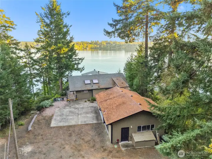 Discover PNW Paradise in 2026 in one of the most beautiful Islands in the Puget Sound. At the South edge of Harstine Island, this hidden gem has panoramic views of the Inlet & Mt Rainier. The perfect escape from city life, yet has room for entertaining w/ sprawling decks, open floorplan, lots of parking & even boat-accessible. Lovingly updated, this home has spacious kitchen & dining room w/ vaulted ceilings & cozy woodstove, 2 beds/2 baths, +downstairs Rec room/bonus room & utility 1/2 bath. Two-bay garage, horseshoe pit & over $100k in recent landscaping gives a magical park-like feel! Walk the quality built staircase down to 73' of shoreline w/ tideland rights for oysters, clams & fishing. Community pool & water included in HOA fees.