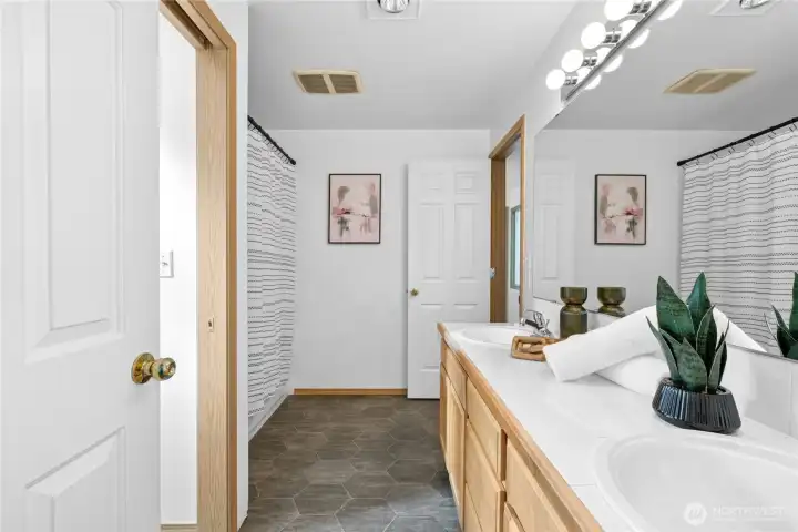 Stylish & Updated Haller Lake home tucked in a quiet setting near shopping & freeways. Light-filled kitchen w/ Quartzite counters, tile backsplash & gas range opens to a sunny living room with gas fireplace & deck. Separate media room overlooking the private yard + dining area and half bath. Upstairs features a spacious primary suite with view deck and second bedroom. Lower level includes full bath, garage, and two flex rooms—ideal for guests, office, gym or nice rental potential. Over $50K in quality improvements including fresh interior/exterior paint, new carpet, Newer mini splits installed, new piping throughout home, newer Refrigerator & Stove & so much more, making this home move-in ready! EXCELLENT LOCATION & Proximity to Light Rail!