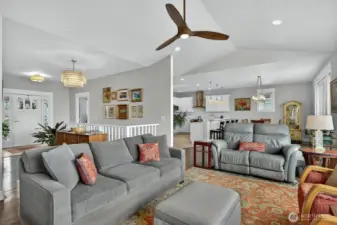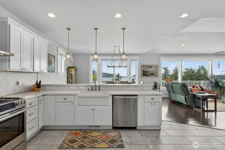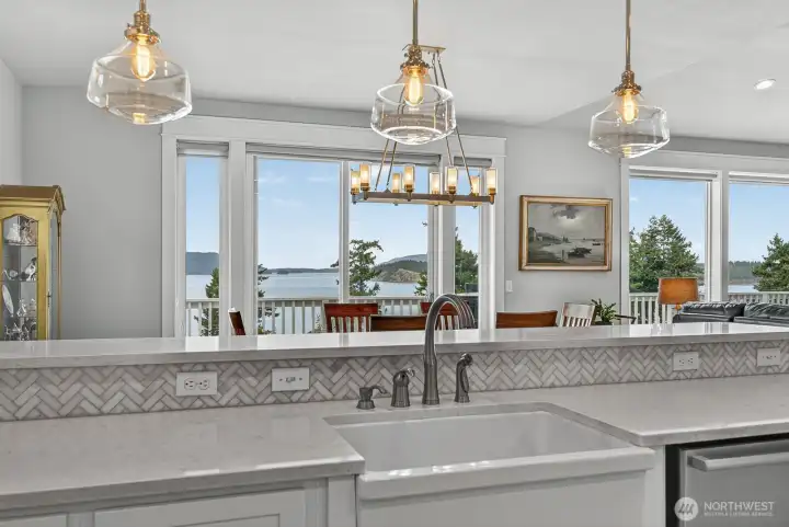 Stunning custom home where sweeping views of the Salish Sea, Guemes Channel, Mt Baker & more greet you the moment you enter. Warm & inviting vaulted living is filled with natural light from view-facing windows. Enjoy seamless main-level living with spacious primary giving 5-piece en-suite w/jetted tub, tiled shower & generous walk-in closet + 2 addtl bedrooms, full bth & laundry. Gourmet kitchen impresses with Bosch appliances, quartz counters & maple cabinetry w/thoughtful built-ins. Effortless indoor/outdoor flow from expansive deck to take in scenery. Daylight lower level offers great potential—expand living space w/rec room, addtl bdrm, gym, bath or finish as separate suite with kitchen & laundry for multi-generational living or rental.