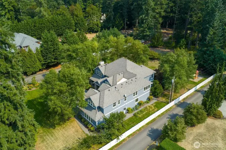 Welcome to this extraordinary Craftsman estate, offering the perfect balance of timeless charm and modern luxury. Nestled on 3.13 acres of flat sun-drenched, lushly landscaped grounds, this home provides the ultimate in privacy and security with a gated entry in a serene setting. The 6151 sf main house showcases the craftsmanship of classic shingled architecture combined with luxury finishes throughout. Enjoy a primary suite on both levels of the home. A detached 815 sf guest house offers flexibility for extended living, guests or a private office retreat. Designed for both grand entertaining and everyday living, it is a true sanctuary, creating an unmatched lifestyle experience.