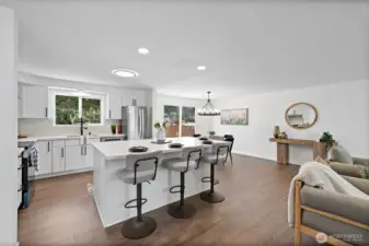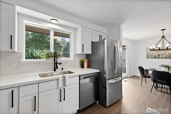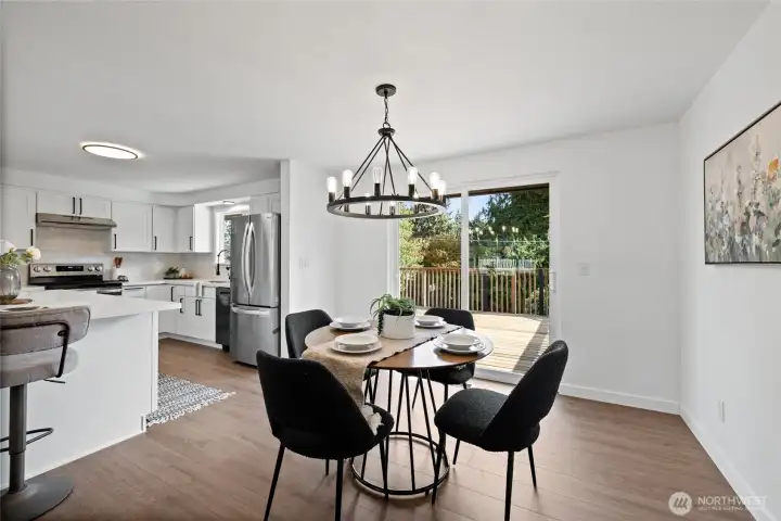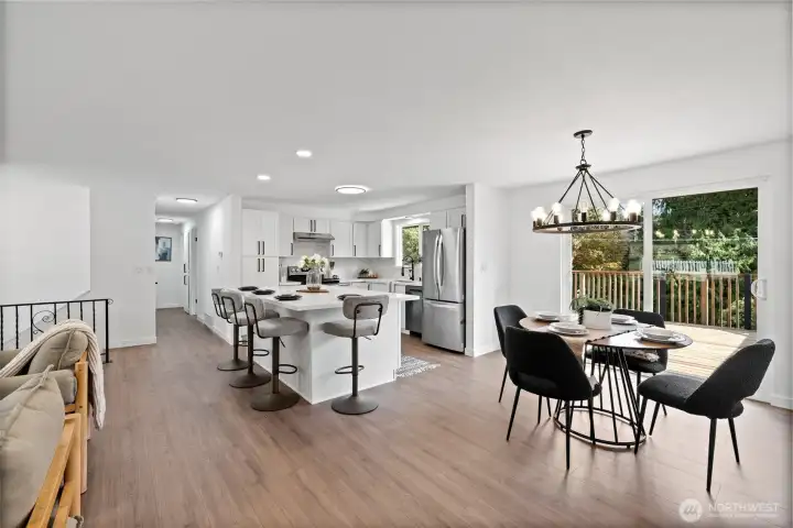 Tastefully REMODELED 4 bed & 3 bath home. All bedrooms are good sized. Freshly painted inside and out and New roof leaves nothing but to enjoy. Upstairs features the living room, the Primary bedroom with newly remodeled 3/4 bath, 2 bedrooms and another remodeled bath. You will love the kitchen with new cabinets, counters and an island for all your culinary creations! The dining area leads out to an enormous entertaining deck and down to the backyard with plenty of outdoor garden spaces. Downstairs is another bedroom & bath and large recreation room, an attached garage and covered patio. A short 20-minute drive to JBLM. Minutes to Hwy 16. All of this found in a quiet neighborhood that feels like neighborhoods ought to be. Come see it today!