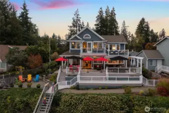 Sitting on the southern end of Stretch Island, this home has been lovingly designed to embrace the beauty of the Puget Sound. From the time you cross the bridge onto the island, you feel transported to a magical and peaceful place. Rebuilt in 2007, the home has been designed to maximize the glorious 180-degree views of Case Inlet, with Mt. Rainier front and center. Upper and lower decks allow for whale, eagle, otter, and seal watching. A staircase leads down to 75ft of cobble beach with oysters, clams-and a new bulkhead. Beautifully curated landscaping provides color and lush greenery all year round- pick your own olives and kiwis! It is very rare to see property for sale in Vineland Cove--so seize the opportunity while you can!