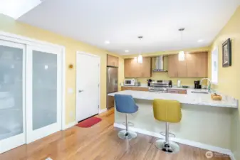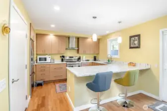 Set on nearly a half-acre, this home offers the perfect blend of comfort and function. The open layout features bamboo flooring, quartz countertops, and a gas fireplace for cozy evenings. The kitchen shines with under-cabinet lighting and a wired pantry, while the bathroom’s heated floors add luxury to your morning routine. Step outside to an expansive patio and yard—ideal for entertaining or relaxing—with a gas BBQ hookup, outdoor hot water access, and a sprinkler system. A garage with epoxy floors and a backyard shed with an electric door make yard work and storage effortless, completing this move-in ready retreat built for everyday living and easy enjoyment.