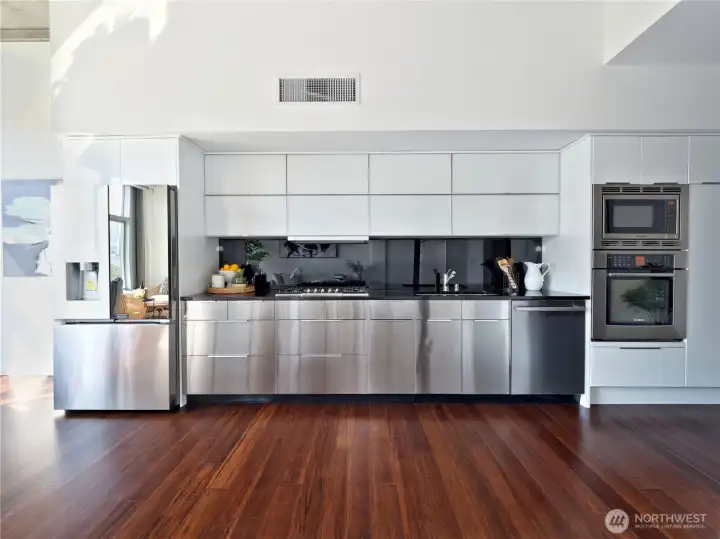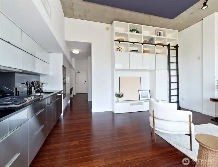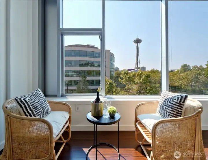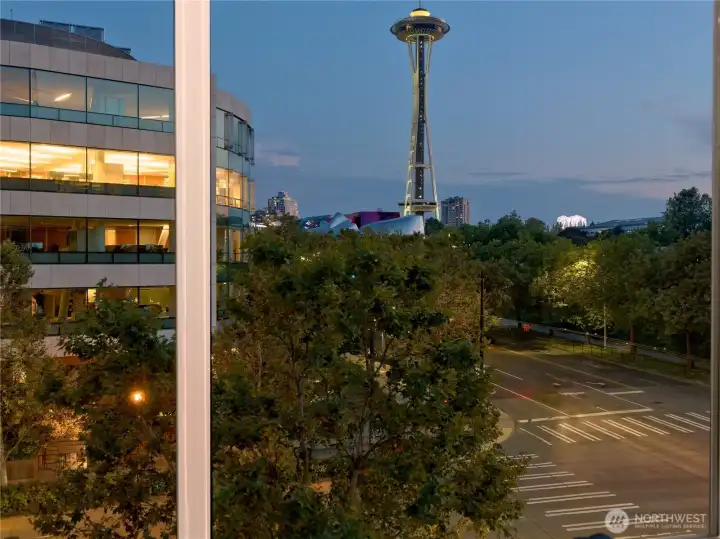 Uniquely updated 829 sq ft urban 1BR at LUMEN with top floor Space Needle views: bamboo hardwood floors, Bosch gas range/oven/dishwasher, new LG Instaview Fridge and Wash Tower. Expansive ceiling height , South facing windows provide abundant sunlight while blackout shades + solar shades allow precise control of views/privacy. Central AC. 1 parking spot in secure garage with car wash + storage. Amenities: concierge, owner’s lounge, Sky Bar, Theatre Room, fire pit, BBQ area. Unbeatable location above QFC, Konvene, Orange Theory, just steps to dining and the arts, Seattle Center & Climate Pledge Arena. Within walking distance to SLU, Queen Anne AND Downtown Preinspected & ready for you !