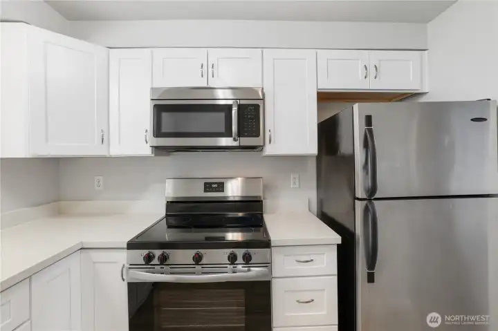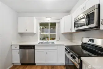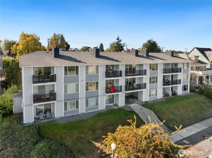 Discover easy living in this beautifully updated 2-bed, 1-bath condo in desirable North Tacoma with stunning views of Commencement Bay. This light & bright ground-floor unit features an open floor plan with newer LVP flooring & newer windows throughout. Enjoy a fully remodeled kitchen with modern finishes & all appliances included. The updated tile shower adds a fresh touch to the spacious bathroom. Cozy up by the wood-burning fireplace or take in bay views from the bedroom & patio. An in-unit washer & dryer offer everyday convenience, & a 1-year home warranty provides added peace of mind. Ideally situated near parks, dining, waterfront attractions - a prime location. Mortgage savings may be available for buyers of this listing.