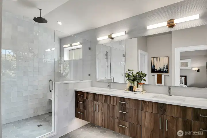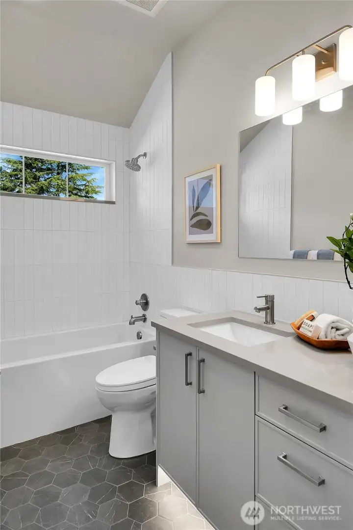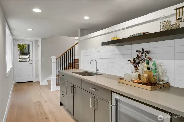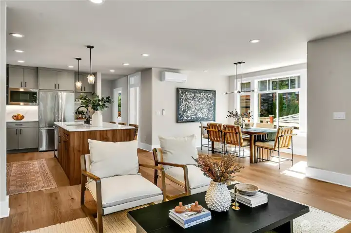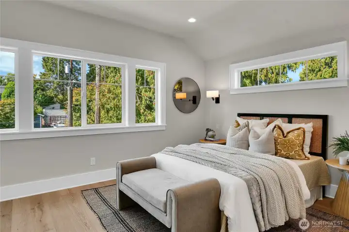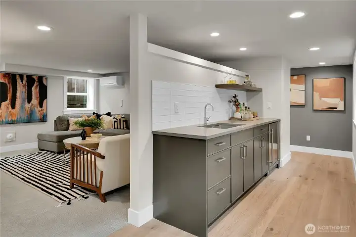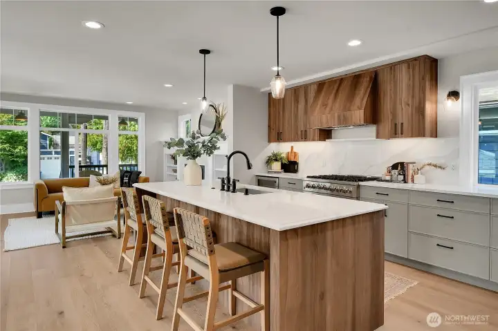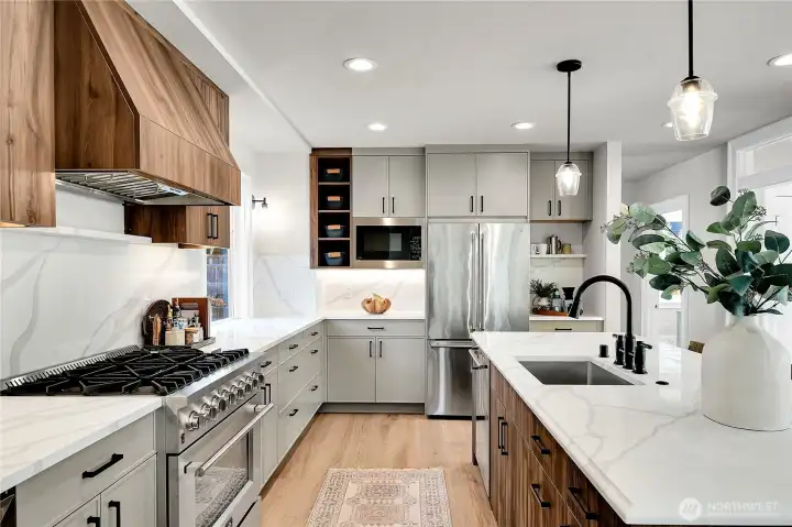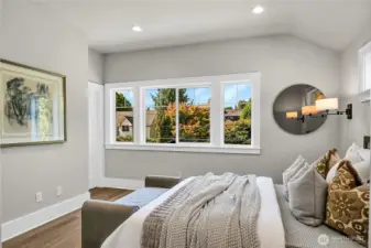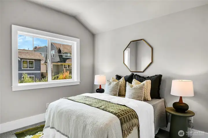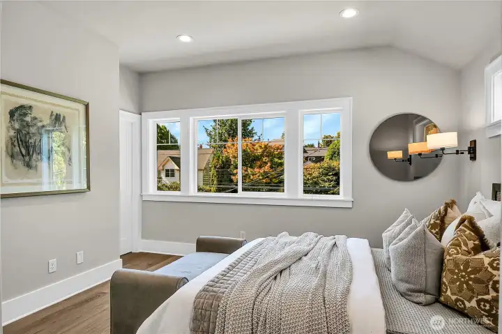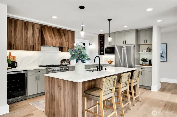 Perched at the top of Queen Anne Hill, this fully renovated 2025 Craftsman blends timeless charm with contemporary finishes. A welcoming front porch leads inside to an open island kitchen with slab quartz counters, 6-burner gas range, beverage fridge, pantry, and abundant storage. The great room offers a gas fireplace and built-ins, with a flex room and powder nearby. Upstairs: a luxe primary suite with walk-in closet and spa shower 2 additional bedrooms, full bath, and laundry room. Lower level hosts 2 bedrooms, full bath, media room, wet bar, and walk-out access to a fenced yard and patio. Detached studio perfect for office, yoga, or artist loft.