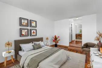 This sun-filled condo is all about the views! From oversized, east-facing windows, find a stunning viewpoint encompassing the Cascades, Queen Anne, and the Ballard Bridge. The renovated kitchen features brand new quartz countertops, stainless steel appliances, a breakfast bar, and an abundance of cabinet space. An open dining area, covered patio, and large sunken living room are quintessentially MCM. Similarly, the primary suite is fit for a king bed and has an incredible walk-in closet with custom built-ins. Deeded parking ideally located outside entrance to the unit. Enjoy amazing amenities at The Eldorado, including an outdoor pool, lounge, and exercise room. Minutes to charming Magnolia town center, Downtown Seattle, Ballard, and SLU.
