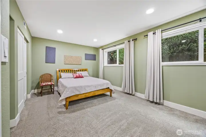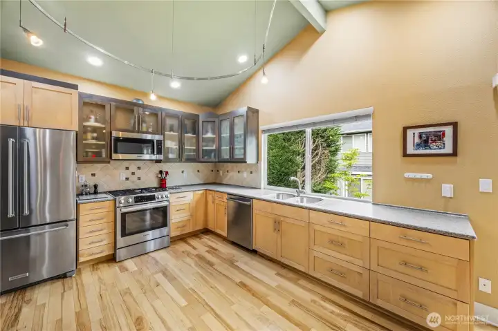 A stunning interior, designed for comfort, open concepts and easy living greets you at the front entry of this modern split level home. The bleached hickory stairs, widened entry, shaker kitchen and floor length windows bring light and function to a well-cared for home. Two full Baths, ensuite to primary, and all updated! The kitchen slider opens to a private patio. quiet and privacy come at the end of the Cul de sac. Expansive yard, two car garage, new appliances, and a new roof. Recently upgraded AC keeps you cool! Downstairs fully finished rec room features built in study desks, the second fireplace and a guest room. Laundry, kitchen-ette & walk in shower. 3 BRs up, 2.75 BA by design. Walk to NSD schools. 10,000 sf Lot