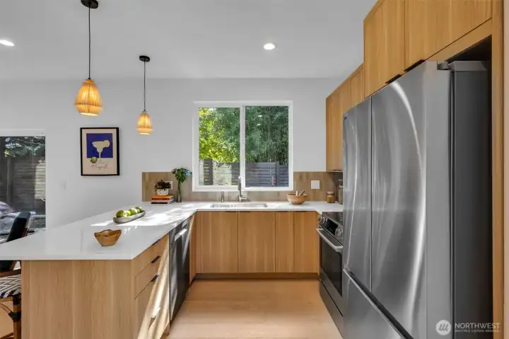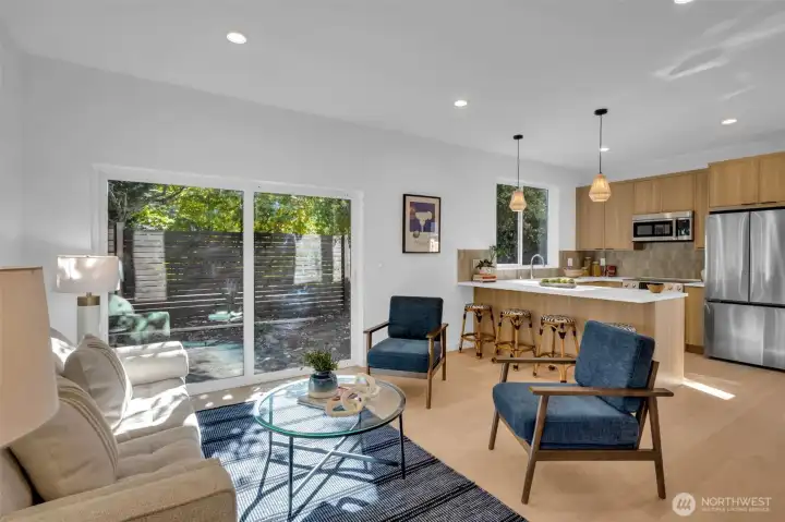 Introducing three stunning new construction homes in the peaceful Seaview neighborhood of West Seattle! Essentially 3 stand alone units, this inviting residence is only on two stories and offers 1,084 SF of thoughtfully designed space, featuring 3 bedrooms and 2 bathrooms. The first floor boasts an open concept living room, dining area, and kitchen, seamlessly connecting to a fully fenced yard and patio—perfect for outdoor entertaining. Three spacious bedrooms are located upstairs, ensuring privacy and comfort. Enjoy the convenience of an attached one-car garage and the tranquility of a quiet street, all while being just a short walk from the vibrant shops and eateries at the Alaska Junction.