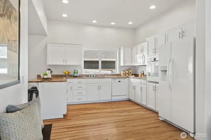Lovely corner lot in picturesque East Glen! Charming front porch leads to an inviting, open layout with vaulted ceilings, loads of natural light, fresh paint, newly refinished hardwoods, new carpet, granite counters, and more. Connected living spaces perfect for quiet evenings at home, or hosting holiday gatherings. Upstairs, you'll find four bedrooms, including a spacious primary with en suite bath & walk-in closet. Fenced yard with patio, adorable play house, raised beds and plenty of gardening and/or play area. Sidewalk neighborhood surrounded by greenbelt and only steps to Forsgren Park & Shelton View Forest trails. Easy access to I5, I405, and Bothell & Kenmore shopping & dining. Acclaimed Northshore schools. Don’t miss out. Hurry!!