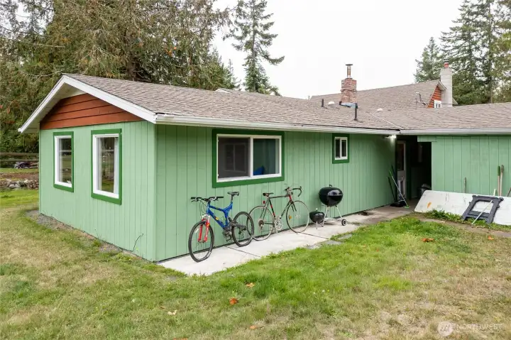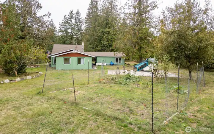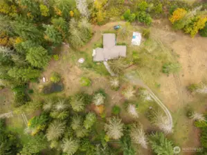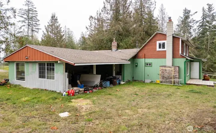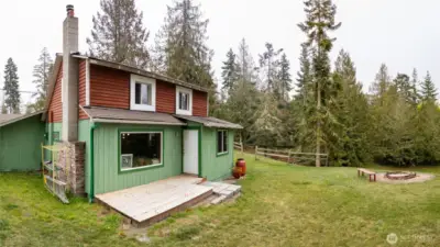 Secluded 5-acre property outside Town, perfect for multi-generational living with two separate quarters. The home has updates including newer windows, siding, paint, and skylights. Features concrete RV parking with power. Just 10 minutes from Sequim and minutes from John Wayne Marina, blending privacy with convenience. Cozy interior with hardwood floors, wood walls, and whitewashed beamed ceilings. Endless potential for expansion, gardening, or recreation. An exceptional opportunity to create your ideal lifestyle in beautiful Northern Washington.