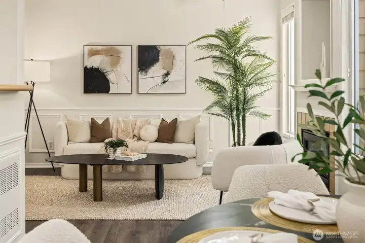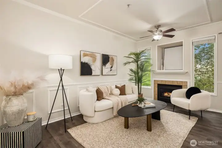 Welcome to your private retreat in the heart of Sammamish! This beautifully updated corner-unit condo blends timeless design with modern comfort—featuring rich flooring, elegant millwork, and an inviting gas fireplace. Natural light fills the open layout, with dining area flowing to a spacious balcony overlooking lush greenery. The kitchen offers ample cabinetry and bar seating for effortless entertaining. Enjoy resort-style living with a pool, gym, and clubhouse just steps away. Prime location minutes to shopping, parks, and top-rated schools—an ideal fusion of comfort, convenience, and style.
