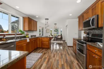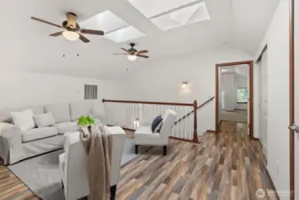 Tucked away on a quiet cul-de-sac, this home offers the perfect layout for multi-gen living, guest quarters & more. The kitchen boasts granite CTs, SS apps, dbl oven, bkfst bar, pantry & cozy dining nook. Expansive main-level primary suite includes 5-pc ensuite w/soaking tub, WIC & private backyard/patio access. Upstairs, the 2 bedroom suites feature vaulted ceilings & balconies overlooking the backyard oasis, & the front yard. Upstairs loft, laundry on main, use the 2nd bedroom on main as an office! Entertain year-round w/LG covered front porch, backyard firepit, pool & hot tub! 759-sq-ft 3-car garage, newer int paint, A/C, & more. Enwrapped by PNW nature, just moments from parks (w/tennis, trails), shopping, JBLM & more. A true must-see!