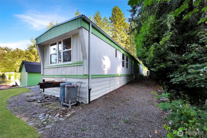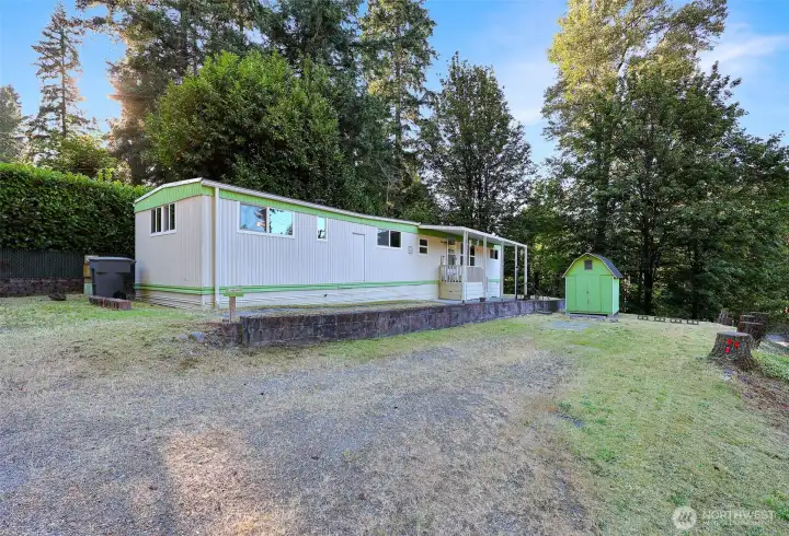 Like stepping back in time in the BEST way! Incredibly well maintained manufactured home on Huge Corner Lot. 3 bed, 2 bath. Fantastic open floor plan dining, living, and kitchen. Primary Suite w/ensuite bath is separated from the spacious guest bedrooms and additional full bath. Newer windows and furnace. Light and bright hill location with grassy, flat entertainment area just down the landscapers steps and still on your sprawling property. Storage shed and tons of parking. Minutes to golf courses, hiking, parks, freeways, shopping! Perfect easy commute and affordable! Financing is available with our lender standing by to make home ownership a reality. This lot is incredible on its own but the sweet manufactured home makes it even better!