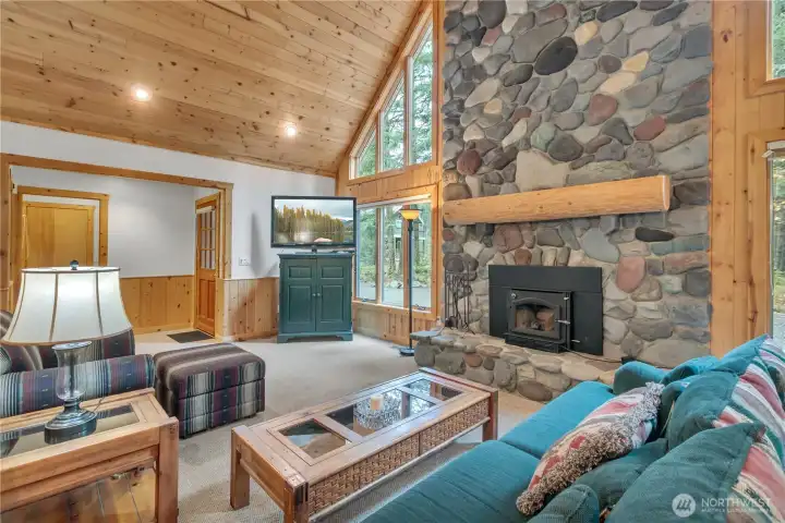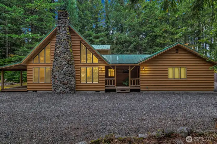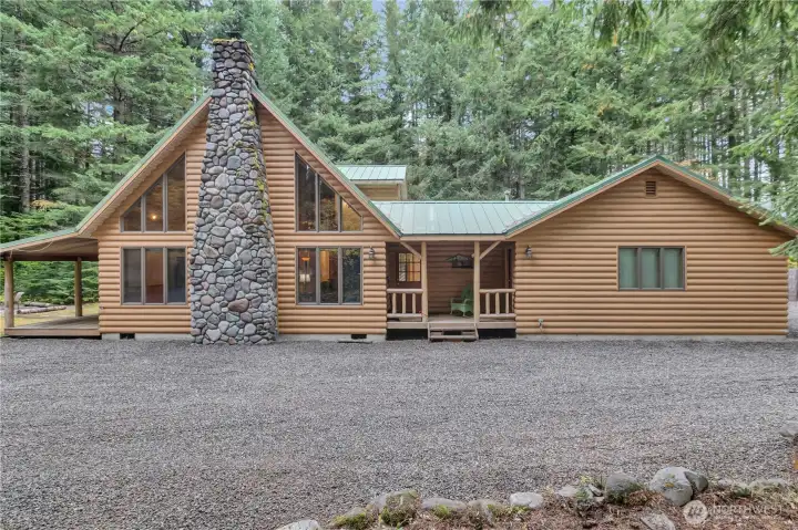 Relax & unwind at this charming 3-bed, 2-bath mountain retreat located on private 1.5 acres in sought after Crystal River Ranch. Featuring stunning river rock fireplace with new wood-burning insert, vaulted wood ceilings, wainscoting & a hand-peeled log staircase made from trees grown on the property. Enjoy a new water filtration system, fresh landscaping, and a cozy firepit area for evenings under the stars. Cedar log siding, metal roof, and a charming covered porch complete the rustic appeal. Just 15 minutes to Crystal Mountain Resort and Mount Rainier National Park, this location is ideal for skiing, hiking, and exploring the outdoors! Currently not a rental BUT it could be used as the perfet vacation rental. The mountains are calling!