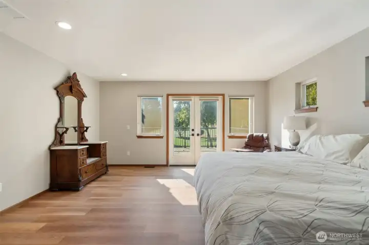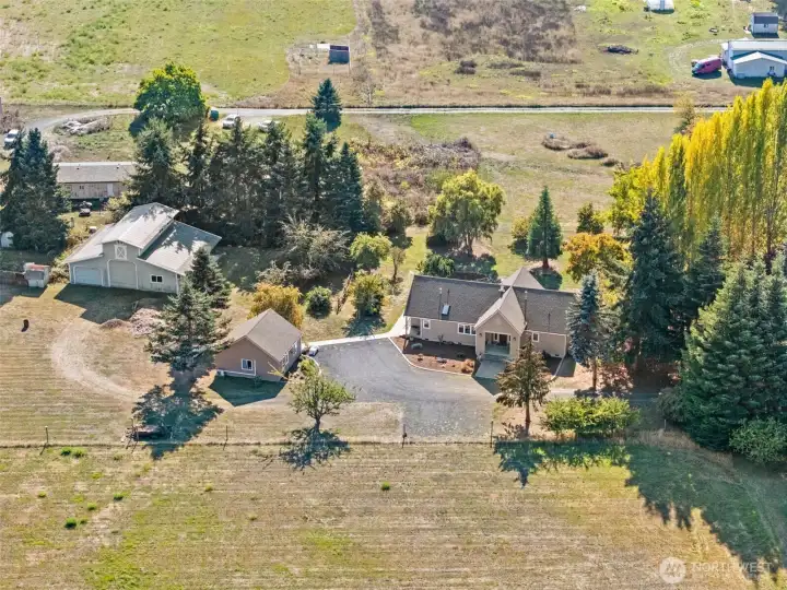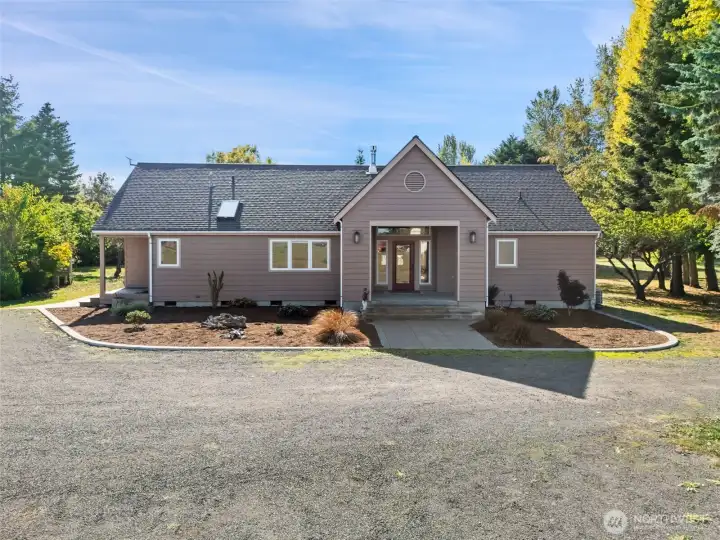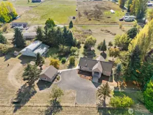 This charming single-level home is set on 2.6 level, beautifully landscaped acres featuring fruit trees and mature plantings. Enjoy your morning coffee on the inviting covered porch, or unwind in the spacious primary suite, complete with elegant French doors opening to a private Trex deck, a luxurious ensuite bath, & a walk-in closet. Detached studio ADU w/kitchenette and bathroom offers flexible space for guests, rental income, or a home-based business. The 1800+ sq ft detached shop is a dream come true- w/ high-bay door ideal for RV or boat use. Ample room for storage & projects, this property blends lifestyle and functionality. Close to trails, golf, & boat launch