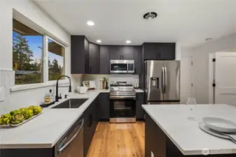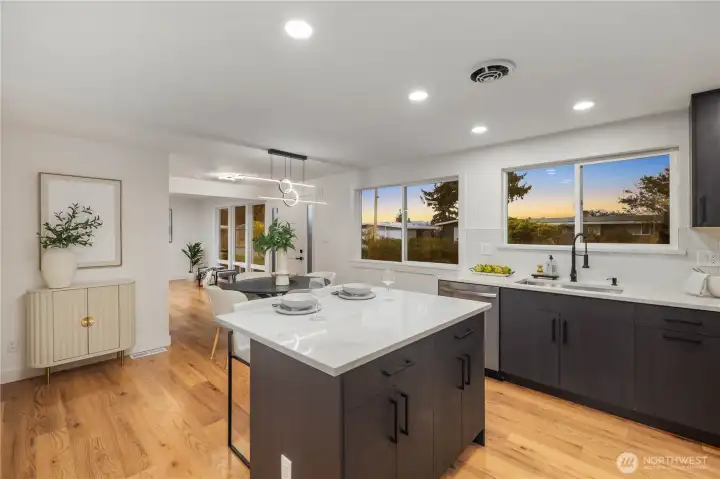 Welcome to Lochmoor! This stylish 2-story home sits on a spacious corner lot & offers partial mountain & lake views from a prime Bellevue location. The remodeled kitchen features SS appliances, custom tilework, gas range & modern cabinetry. Light-filled living spaces showcase new LVP flooring, doors, lighting fixtures, and fresh interior & exterior paint. The primary suite includes a peek-a-boo view of Lake Sammamish and an updated ¾ bath. Enjoy the new Trex deck, landscaped yard, and attached 2-car garage with epoxy flooring. The fully fenced backyard is ideal for entertaining. Conveniently located near Lk Sammamish, Crossroads Park & Mall, top-rated schools, & local amenities. This gem perfectly combines comfort, style, and convenience!
