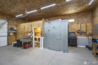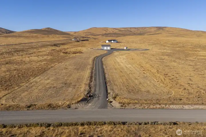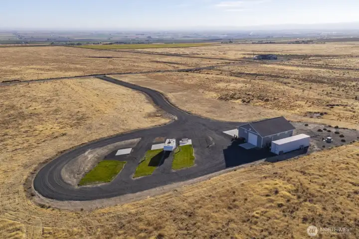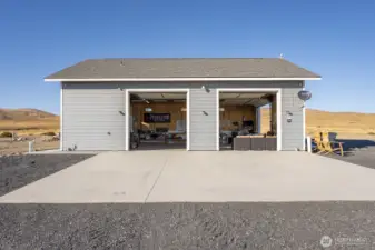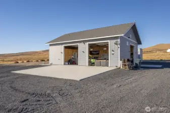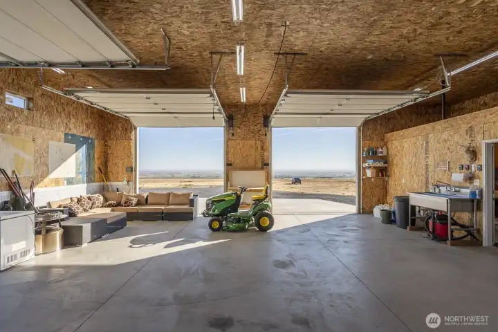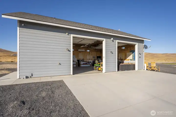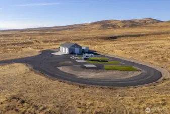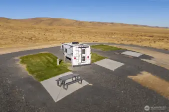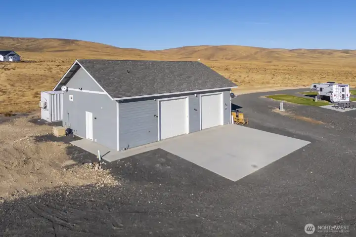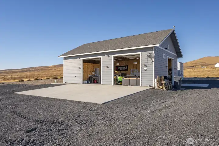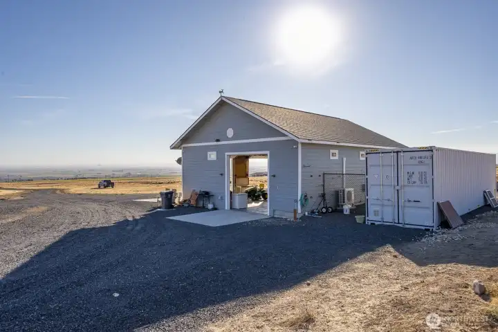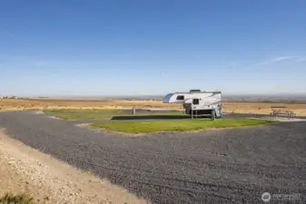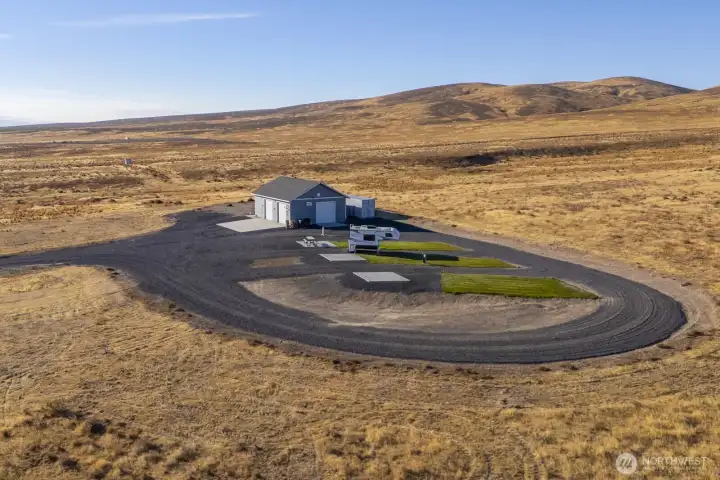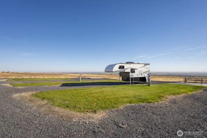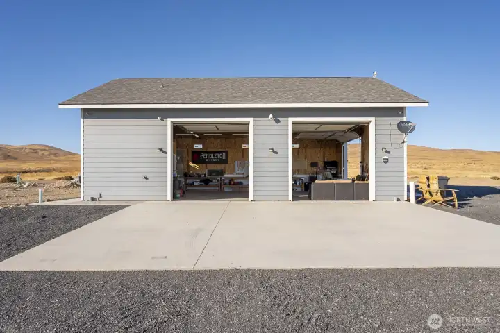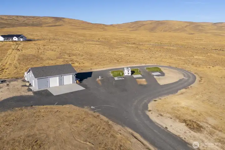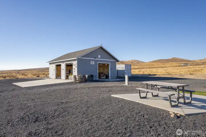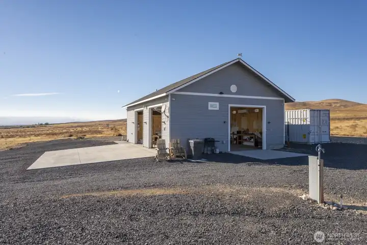 Impressive 1,200 sq ft wood-frame shop on 20 acres on Monument Hill with sweeping views of the Quincy Valley and nearby nature lands. Shop features 3 large electric overhead doors, 30- and 50-amp service throughout and at the pedestal, blown-in insulation, OSB finish, mini-split with propane backup generator, ¾ bath with washer/dryer, and a large walk-in cooler. Three full RV hookups with grass and concrete pads, community shared well, septic sized for a home, and a network of established gravel roads for easy access.