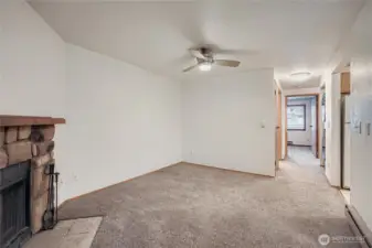 Exceptional value and prime location converge in this spacious, top-floor condo! Enjoy the peace that comes with no neighbors above you & a view of trees out your patio. Highly functional layout & a warm wood-burning fireplace. While move-in ready, this is a rare opportunity to purchase at an accessible price point and customize the interior to your exact taste and style, allowing you to build immediate equity. The condo includes 1 assigned carport parking space and ample guest parking. Pet friendly & perfectly located- you're just minutes from transit, I-405, 167, and Sea-Tac. Below the rental cap, this condo offers great potential for both homeowners and savvy investors seeking an unbeatable entry point! Welcome home.