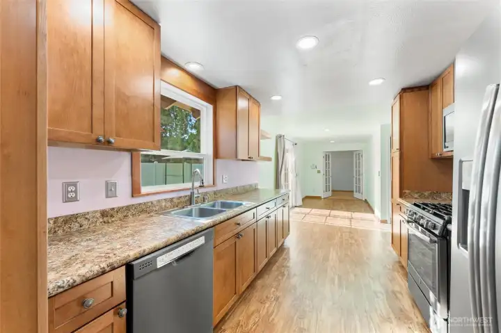 Wow-factor rambler on a corner lot + cul-de-sac in sought-after Hilton Lake area of Silver Lake! Nearly 1,800 sq ft of updated living space + rare 4-car garage w/shop (almost 1,100 sq. ft.)—perfect for projects, or future ADU. Updated kitchen w/ real wood soft-close cabinets, pullouts, gas stove + SS appliances. Bright living room w/ bay window, crown molding & cozy wood fireplace. 4 beds, 2 baths including a private wing ideal for guests or multi-gen living. Refreshed primary, remodeled bath, newer carpet & flooring, LED lighting. Fully fenced low- maintenance back yard, dog run, shed. Newer roof, furnace, water heater, PEX plumbing, and more—PREINSPECTED- this home is turn-key and built to impress!Close to Mill Creek, Everett & Snohomish!