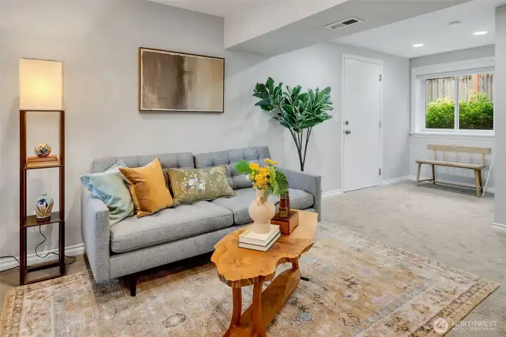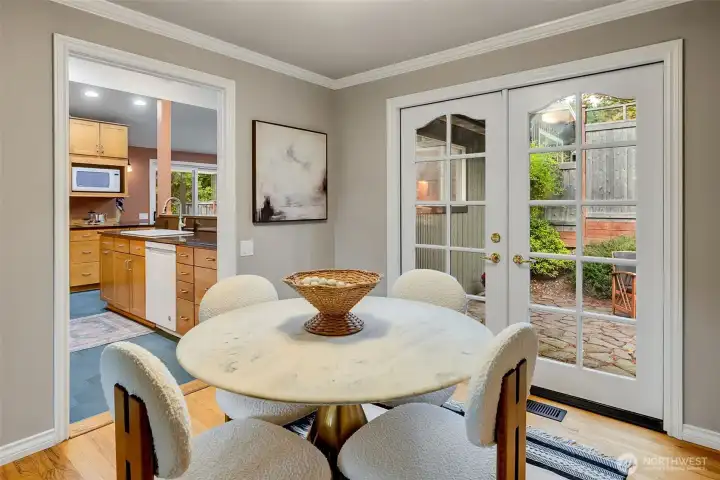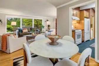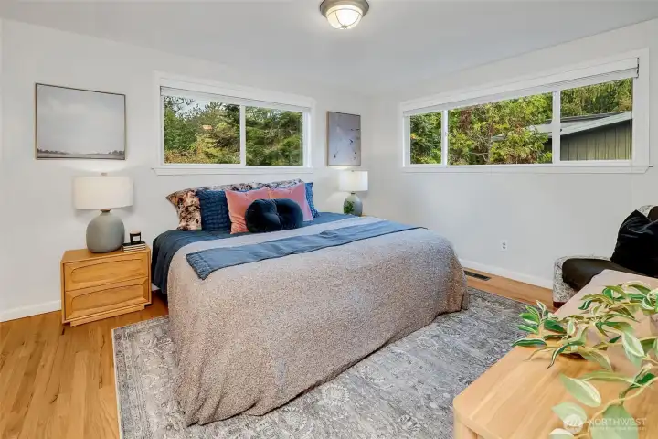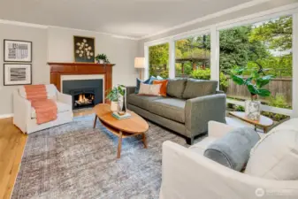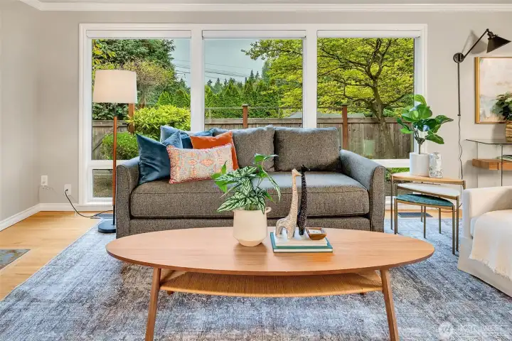 This 3-bedroom, 2-bath Victory Heights home sits on a corner lot at the start of a quiet dead end, just one house from the Kingfisher Natural Area along Thornton Creek. A window wall fills the Living Room w/ light and year-round views of the garden and visiting birds, while a fireplace adds cozy warmth. The kitchen opens to a bright great room w/ vaulted ceiling, perfect for gatherings. Downstairs, a finished flex space invites work, play, or guests. Step outside to a fully fenced yard framed by mature trees, flowering shrubs, and vibrant flowers and vegetable beds that create your own private sanctuary. Features also include a shed combined w/ an integrated chicken coop, and a peaceful patio. Close to parks, trails, and Lake Washington.