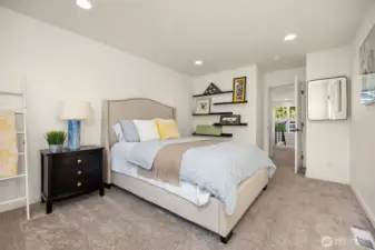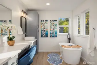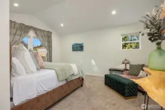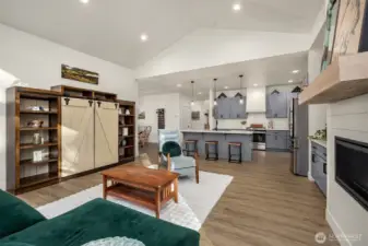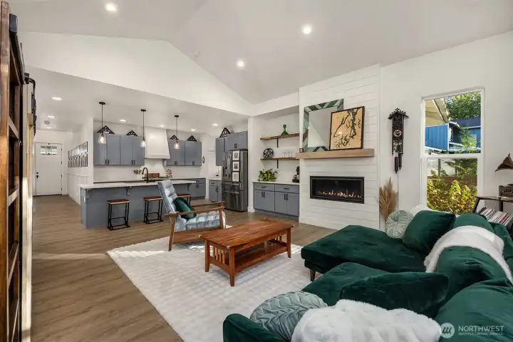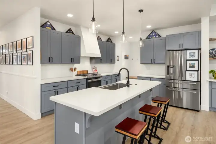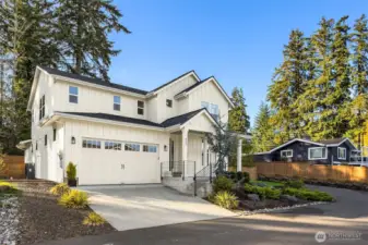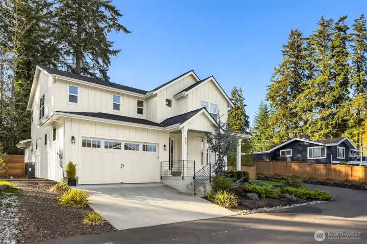 Stunning, almost new home, this nearly quarter-acre property offers privacy and convenience just minutes from downtown Poulsbo and Liberty Bay. Only 4 years old, in a small cul de sac of just 4 sites, the home features soaring ceilings and oversized windows that fill the space with natural light. The open layout flows seamlessly to a covered patio—perfect for entertaining—and a fully fenced backyard. Quartz countertops, custom lighting and chic fixtures throughout. The garage includes sleek epoxy floors for a polished, durable finish. Professionally landscaped with three bedrooms and an office. Huge ensuite primary bath, excellent builder. With its central location, modern upgrades, and thoughtful design, this home is truly better than new!