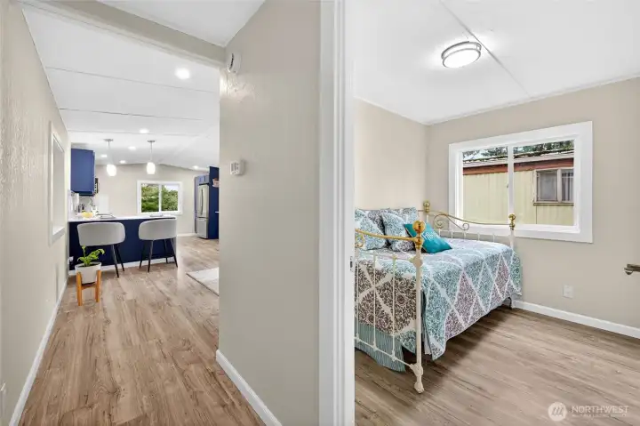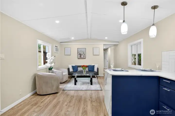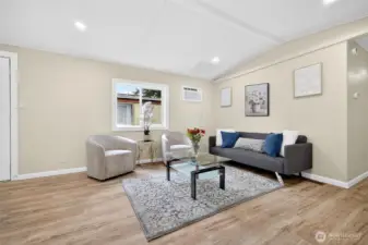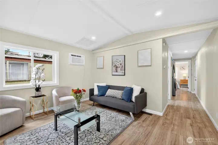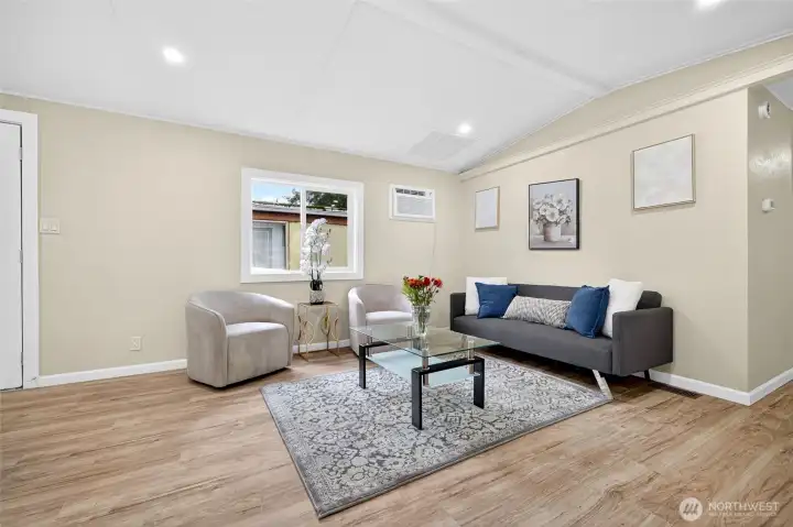 Totally renovated home feels like new as you enter, located in a 55+ community close to shops ,park & ride and I-5 .Updates include roof, bathroom with luxury tile, flooring, kitchen with granite counter tops, new appliances including full size washer and dryer, through the wall AC. New covered porch, professional landscaping, new vapor barrier, fresh paint inside and out nice size storage shed. Conveniently located and one of the most affordable rents in the area ($660.00 a month) include S&G, water only $20.00 approx., billed by park. Walking distance to public transportation, shops and clinic. RV and extra cars parking available. Dogs less than 25 pounds subject to approval. HURRY MAKE THIS BEAUTIFUL UNIT YOUR FUTURE HOME