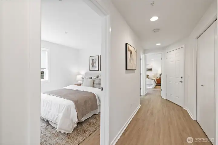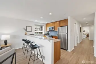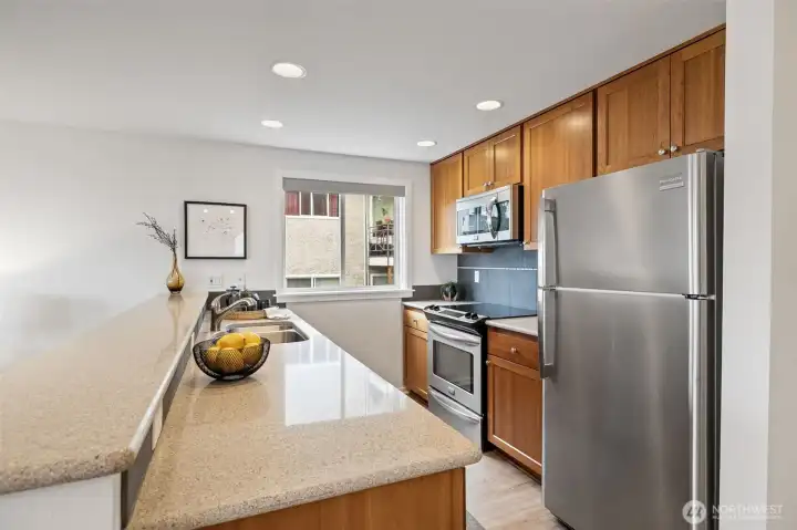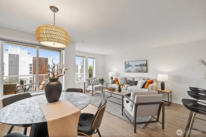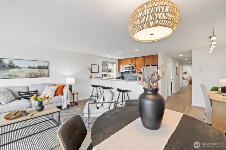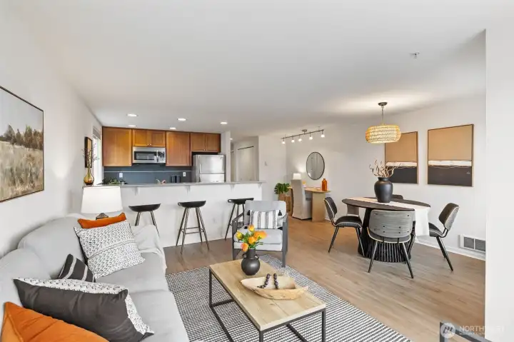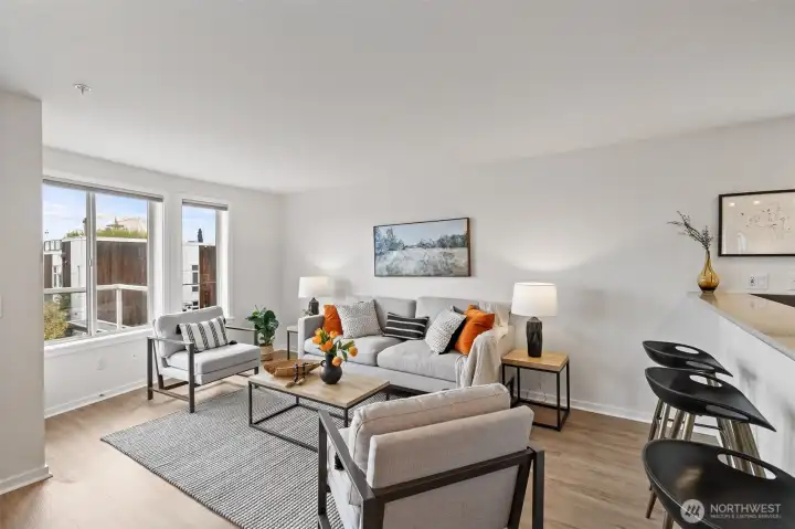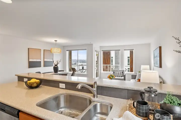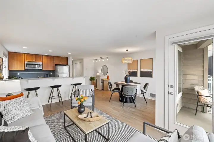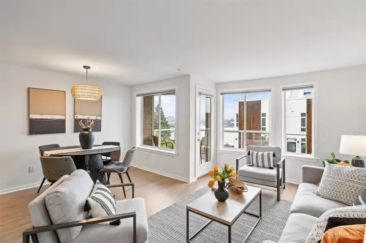 Enjoy stunning views of Lake Union and Gas Works Park from this bright 2-bedroom condo. Conveniently located near parks, bike trails, trendy grocery stores, and public transit, it offers an easy commute to downtown, UW, and nearby tech companies. After a busy day in the city, relax on the spacious private balcony. The open-concept layout features abundant natural light, a modern kitchen, stainless steel appliances, and deep cabinetry. Additional highlights include new LVP flooring and paint, side-by-side LG washer and dryer, one reserved garage parking space with private access, and a secure storage unit large enough for outdoor and sports gear. HOA covers insurance, garbage, and water! 20yr roof warranty, replaced 2022.