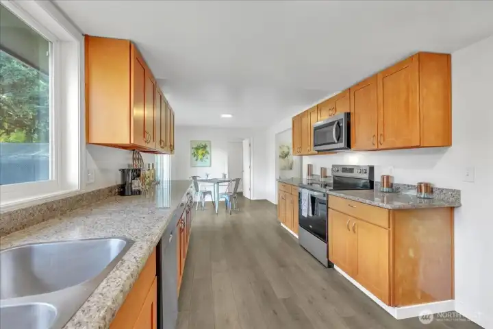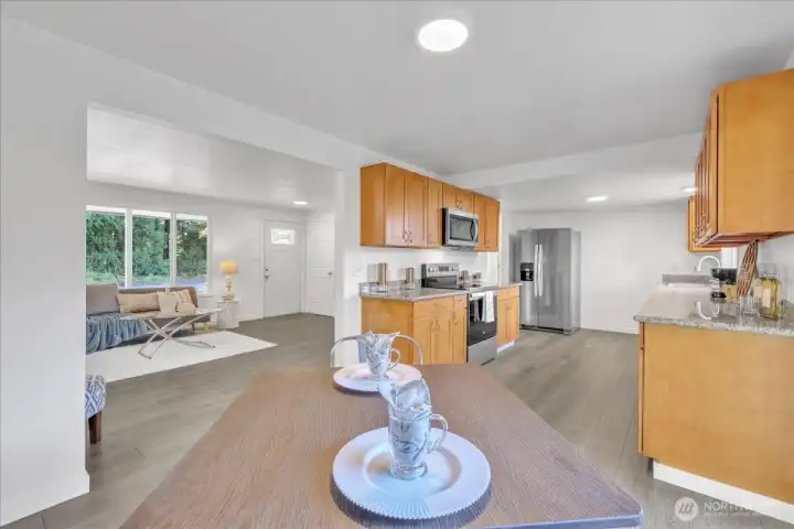 Discover this centrally located 3-bedroom, 2-bath home that offers 2 additional bonus rooms. Enjoy a spacious, fully fenced backyard, with easy walking access to South Kitsap Park, a skate park, and nearby schools. Conveniently close to grocery stores and dining options. Fresh updates include new flooring and interior paint throughout. New kitchen appliances in the expansive kitchen featuring granite countertops. Recent replacements in 2015 encompass the roof, HVAC system, and septic. Complete with a large, insulated garage.