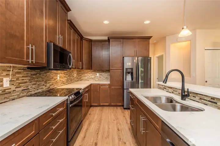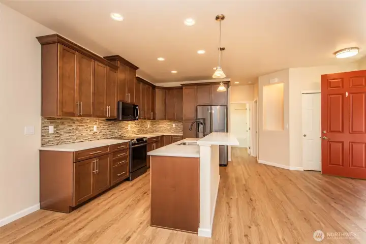 Easy Northwest living in desirable Jennie’s Meadow! This 2017 original-owner, Westerra-built 2-bed/2-bath townhome offers 1,350 SF of open-concept living with 9’ ceilings, faux hardwood floors, Quartz counters with island breakfast bar & stainless appliances. Enjoy the south-facing, private covered patio for sunny year-round indoor/outdoor living. Spacious primary suite with walk-in closet & dual-sink bath is separate from the guest room/bath. Interior laundry with utility sink, plus 2-car attached garage. "Lock & Leave" Lifestyle-Ready with many HOA-provided benefits for a low $439/Qtr (landscaping, common area/road maintenance, gutter cleaning...) Short walk to bus line, shops, dining, Olympic Discovery Trail & Railroad River Bridge Park.