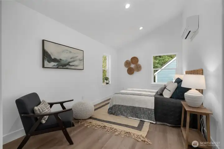 Discover this stunning 3BR, 2.25BA home featuring an open-concept kitchen with a stylish horseshoe island, perfect for entertaining. Vaulted ceilings add elegance, and mini-splits in each bedroom ensure year-round comfort. The primary bathroom features heated floors for a touch of luxury. Enjoy a fully fenced, generous front yard with off-street parking that can accommodate up to three midsize cars. Ideally located near a top-rated school (98% math, 97% reading) and just blocks from a Kiddie Academy. The rear unit (998 sq ft) sold for $775,000; 2 of 3 new construction homes remain. Prime location—don’t miss out!