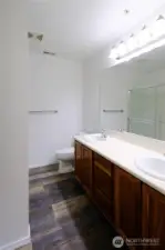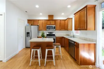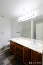 This fantastic townhouse is located in the gated community of Stonebrook village. The main floor features a spacious living room with a 9-foot ceiling, a gas fireplace with a mantle and tile surround, a half bath and a beautiful island kitchen. The kitchen is equipped with stainless steel appliances, a gas range, a pantry, a breakfast are and a slider door that leads to your private patio. Upstairs, you'll find dual master suites and a full-size laundry room. One suite boasts a double vinyl and a walk in shower, while the other includes a private full bath. Additional highlights of this home includes a huge tandem two car garage, a gas furnace and a water heater. The location offers easy access to I-5 and I-167.