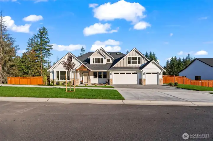 To the homeowner craving LIGHT, space & serene setting, your home is ready! This is NOT your average Tehaleh- large lot, primary on main, three car garage, cul-de-sac location, a FOREVER home feel. Garrette Homes offers something different, you just have to see. Home is perfect for main level living, plus additional space you need for the whole team to gather in the BONUS area upstairs. Extra picture windows & skylights capture the beauty of the location, with peekaboo mountain view you'll love. Primary is dreamy, spacious with ensuite & WIC. Soaring 12ft ceilings great room, oversized island and gas range, butler pantry and MORE! Designer touches throughout. Den on main, two full bed, full bath PLUS bonus bed bath & up. Home for holidays.