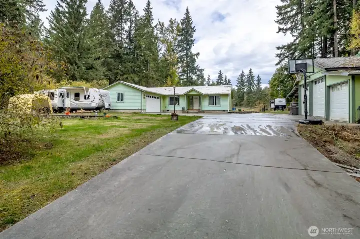 This is the one you have been waiting for! Super clean rambler on just over an acre of land in a private setting yet still close to many conveniences! Open kitchen and living space with tons of storage! Spacious primary with great closet space and bath plus 2 more generous bedrooms on the other side of the home for added privacy. Outside is a covered deck for year round enjoyment, a huge private yard for the animals or garden and a separate 600 sq.ft. shop/garage. RV parking too with hookups!