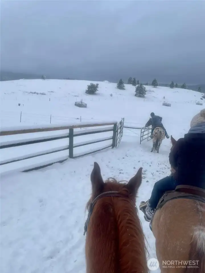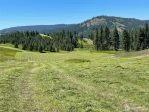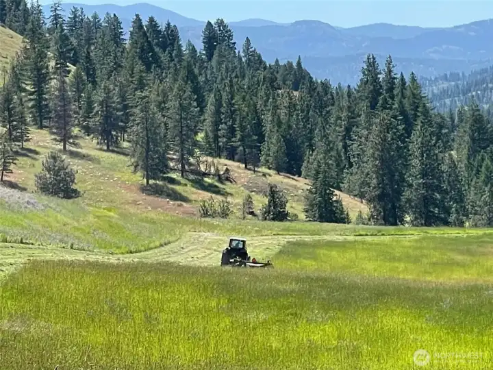 Experience the ultimate blend of luxury and wilderness on this 389+ acre income-producing ranch. This private, gated sanctuary yields over 100 tons of premium grass hay annually and showcases a stunning lodge-style residence crafted with extraordinary attention to detail. Enjoy panoramic views of Curlew Lake and the Kettle Crest Mountain Range from this equestrian paradise. The property features multiple ponds, a custom barn, a cozy guest cabin, and an impressive 60x120 indoor arena/shop. Inside, hand-hewn woodwork, a grand stone fireplace, and a signature tower staircase create a warm, timeless atmosphere. Natural light floods through soaring windows, enhancing the seamless connection between comfort, craftsmanship, and nature.