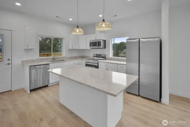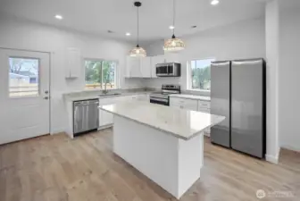 $10,000 seller credit!! One of a kind, new construction 3bd +office, 2bth home just minutes to the lake. This home offers 1450 sqft. of open concept living space. Quality finishes throughout including LVP flooring and carpets in the bedrooms, quartz countertops throughout, stainless steel appliances and modern cabinetry. Spacious primary suite with large walk-in closet and en-suite bath. Enjoy outdoor living with a landscaped yard and a large 8x15' patio! Attached finished 2 car garage and covered entry. Extra parking on side of home. Conveniently located just minutes from the lake, eateries and grocery. Burned manufactured home next door will be removed soon.