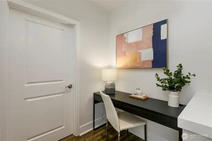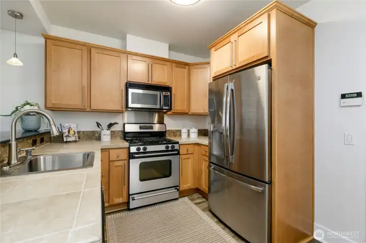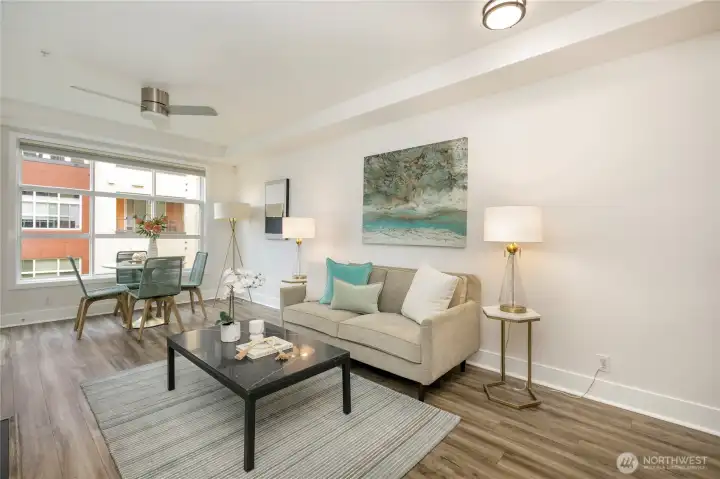 One of the most sought after areas in the city. Grab a local coffee or smoothie before your stroll around Green Lake, then the day is yours to enjoy shopping, a variety of amazing eateries, PCC, pubs, gyms, and all within steps of your front door. This chic, secure entry condo with elevator access has the perfect layout with high ceilings complimented by a wall of windows allowing in the natural light. Fresh paint, luxury plank flooring, kitchen bar seating, inviting living space with gas fireplace, huge walk-in closet, work station and a walk out deck. Extremely well run HOA with no history of special assessments. Secure garage parking and storage with owner option to purchase an EV upgrade. Convenient to I-5 & Light Rail. Pet Friendly!